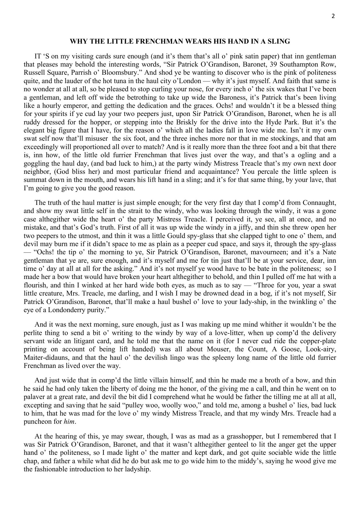 Why the Little Frenchman Wears His Hand in a Sling