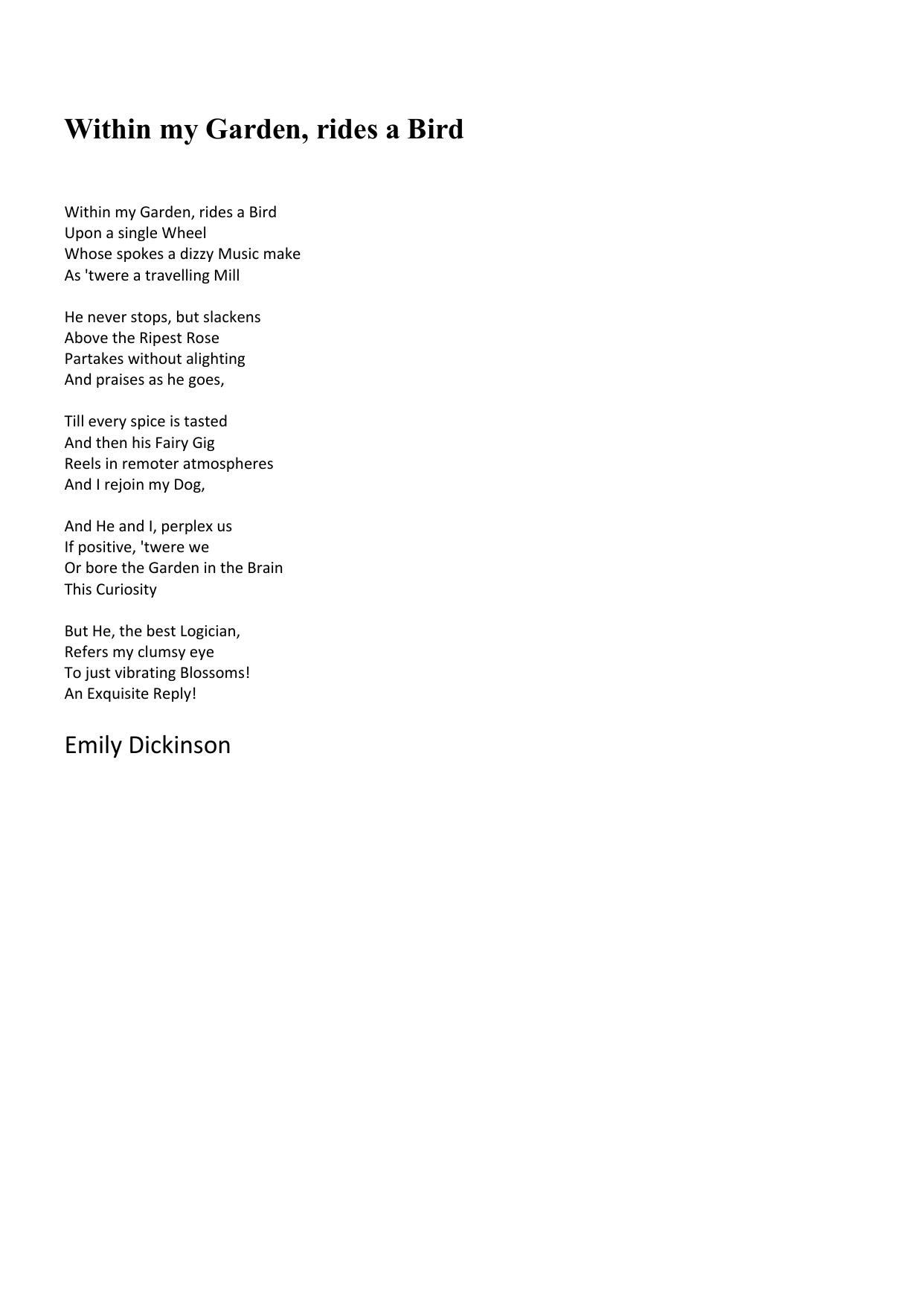 Within my Garden, rides a Bird