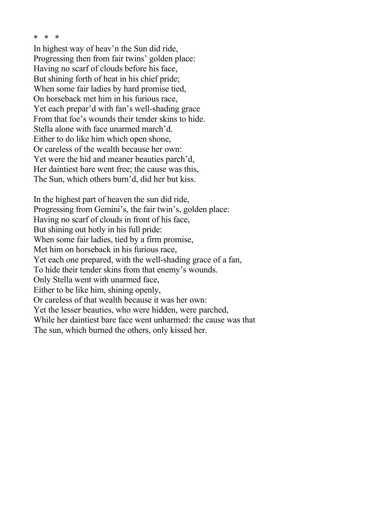 "In highest way of heav’n the Sun did ride"