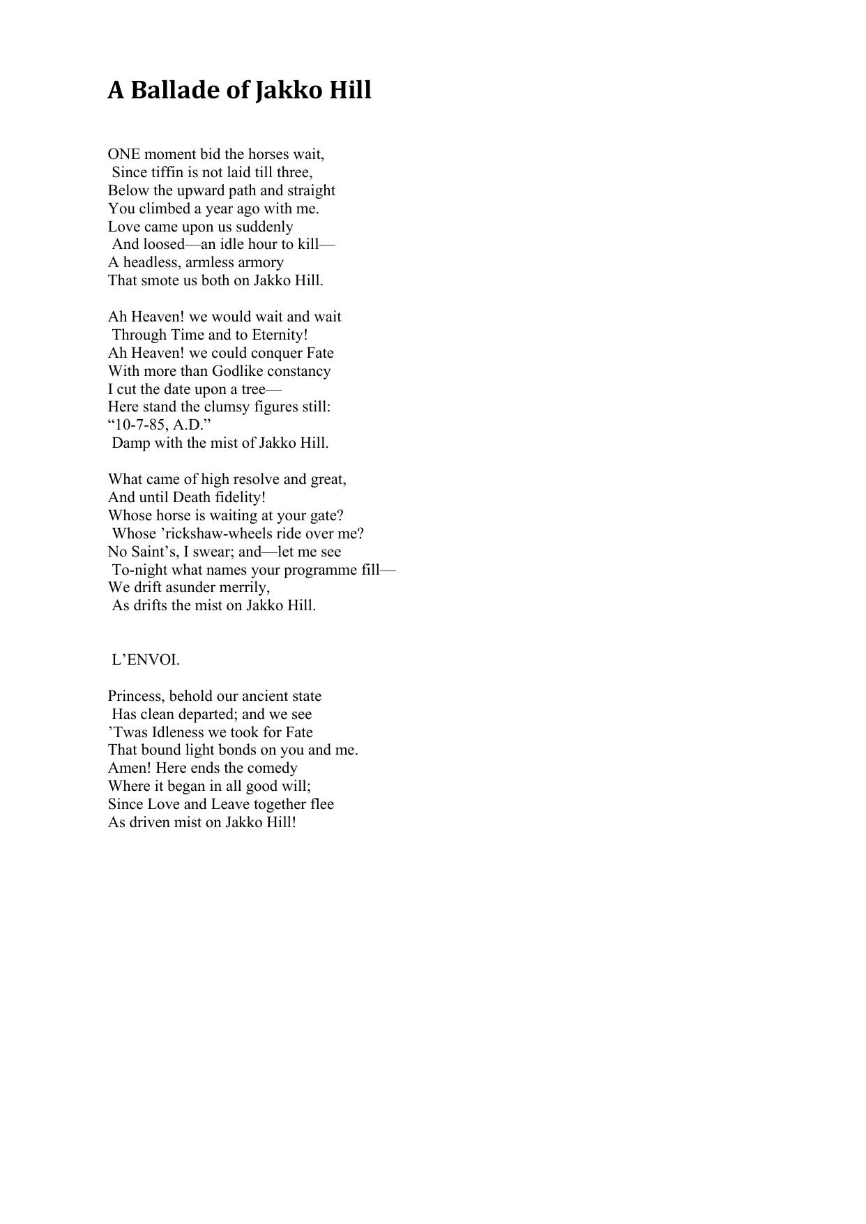 A Ballade of Jakko Hill