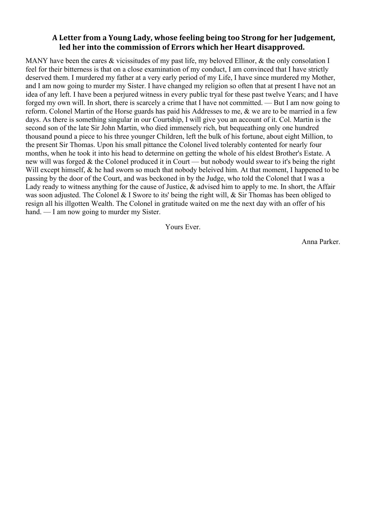 A Letter from a Young Lady