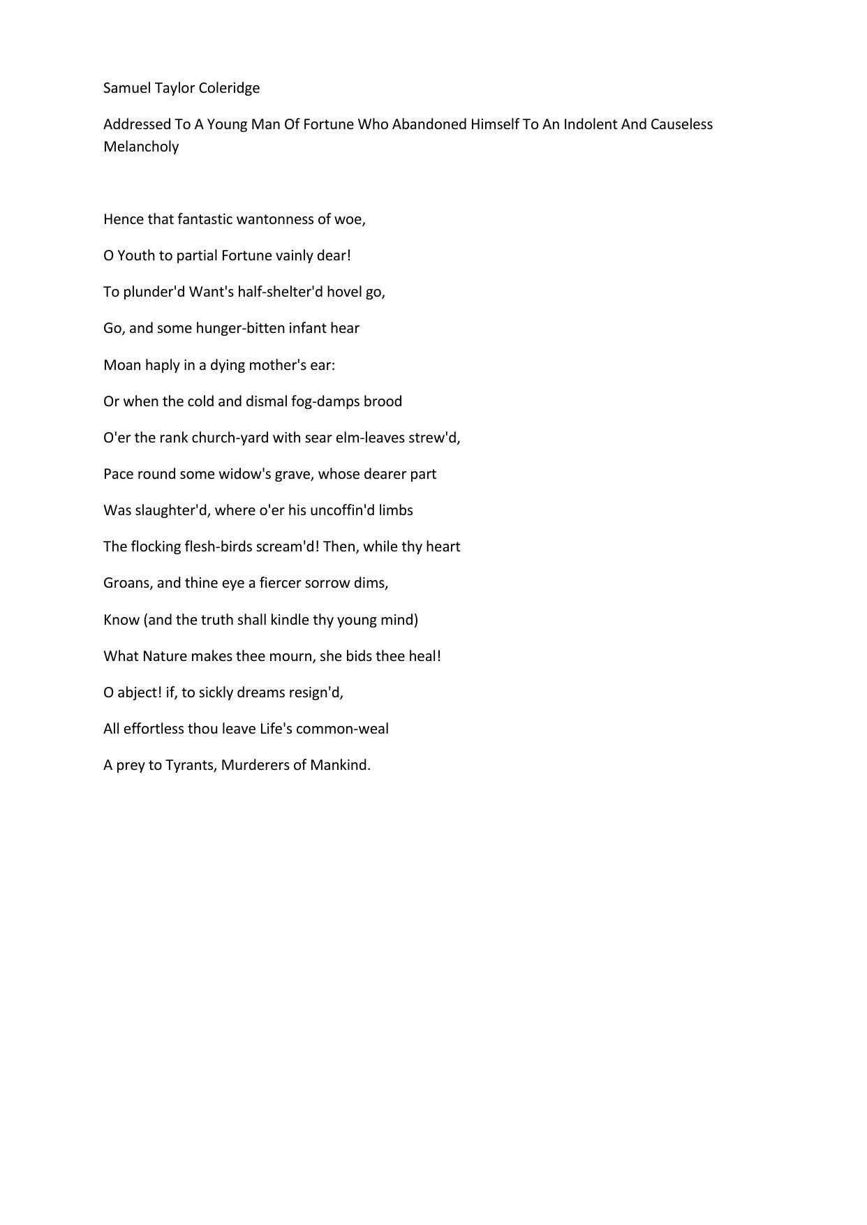 Addressed To A Young Man Of Fortune Who Abandoned Himself To An Indolent And Causeless Melancholy