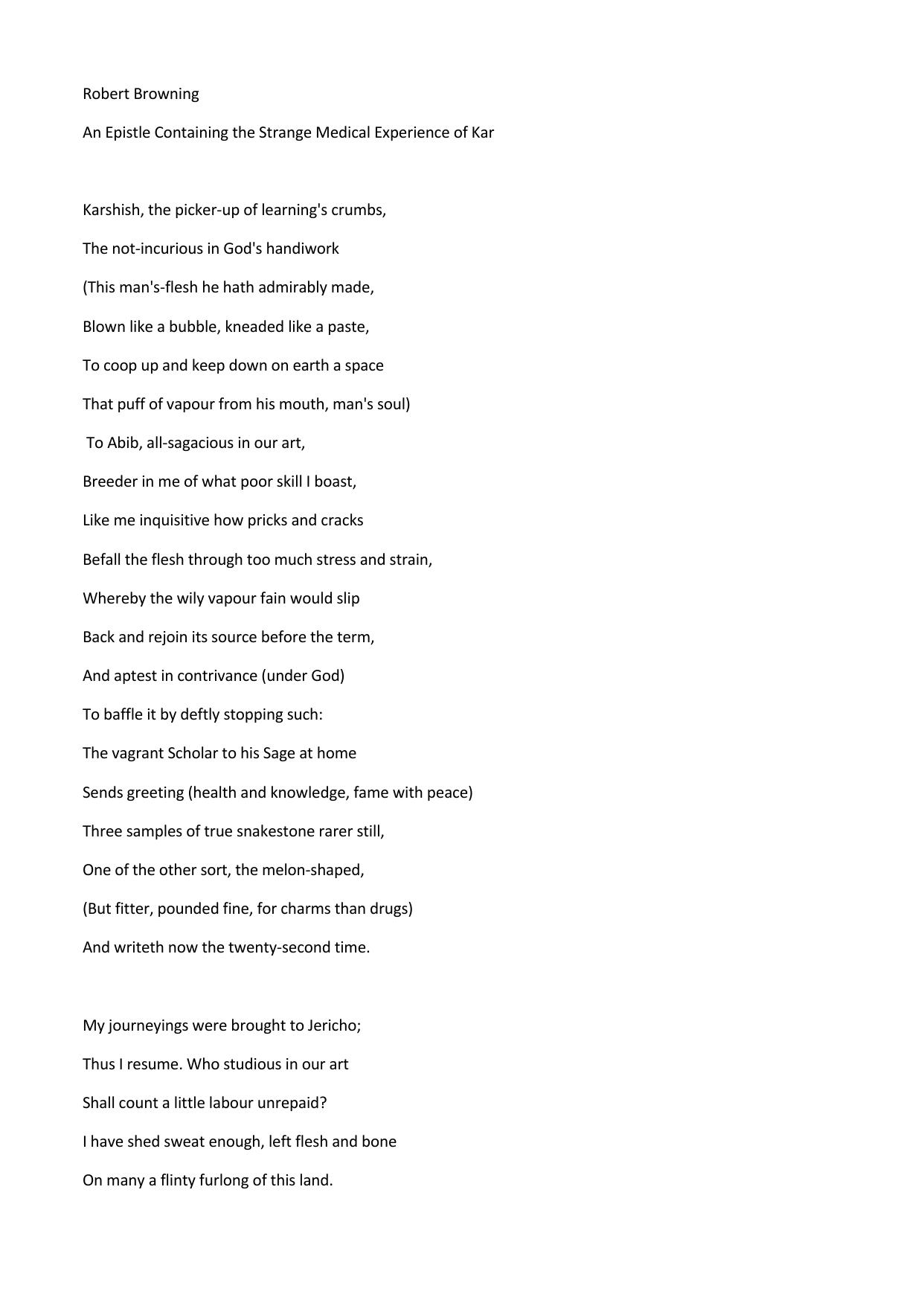 An Epistle Containing the Strange Medical Experience of Kar