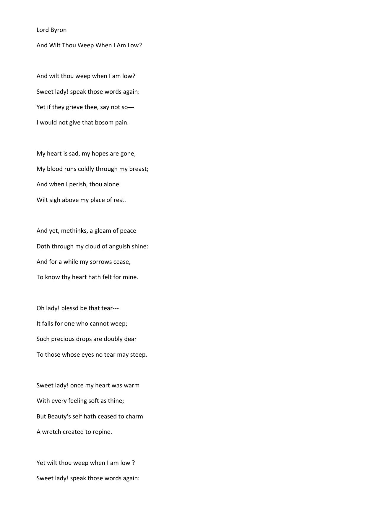 And wilt Thou weep when I am low?