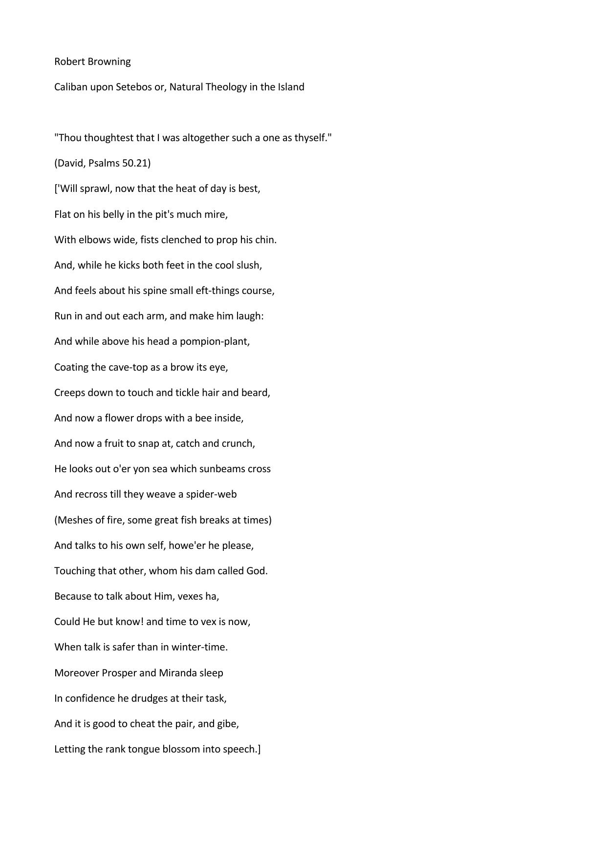 Caliban upon Setebos or, Natural Theology in the Island