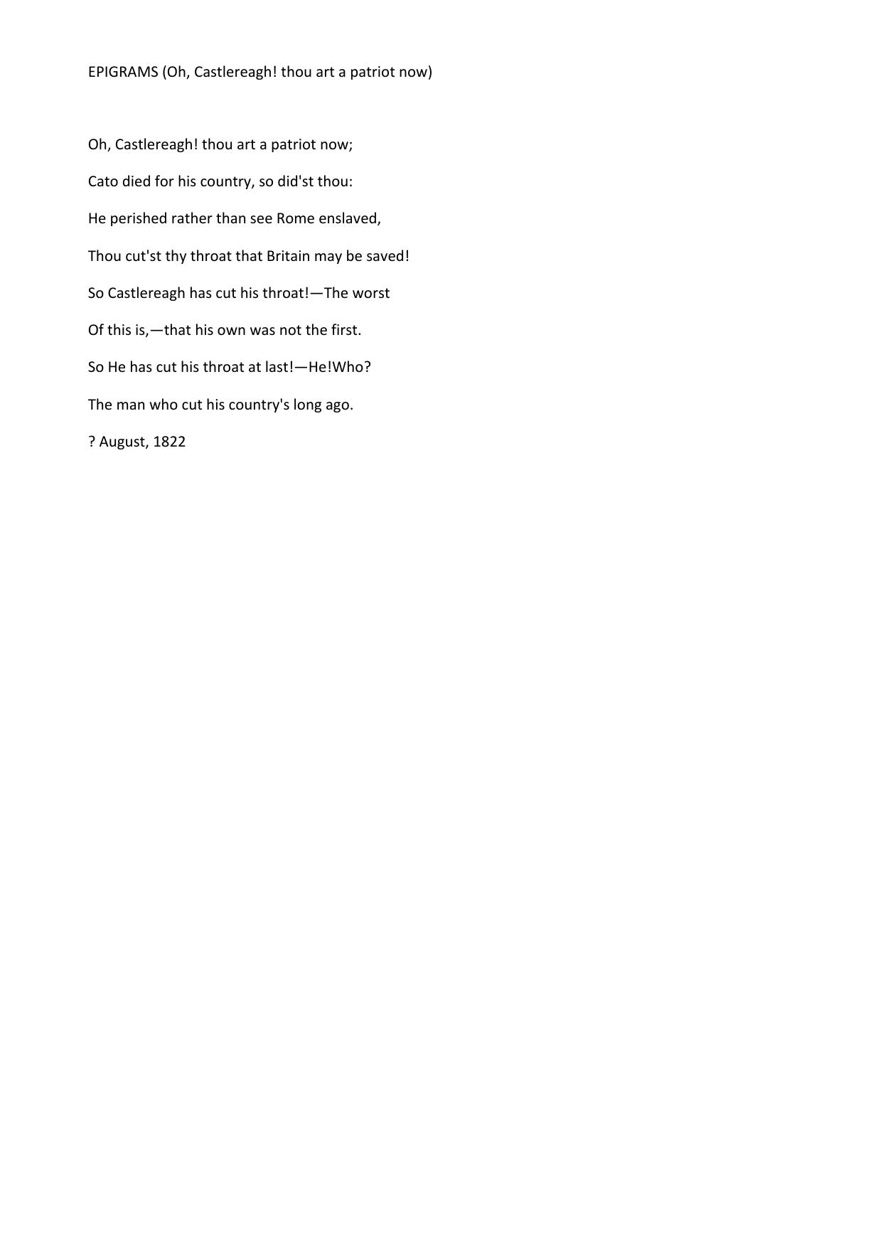 Epigrams (Oh, Castlereagh! thou art a patriot now)