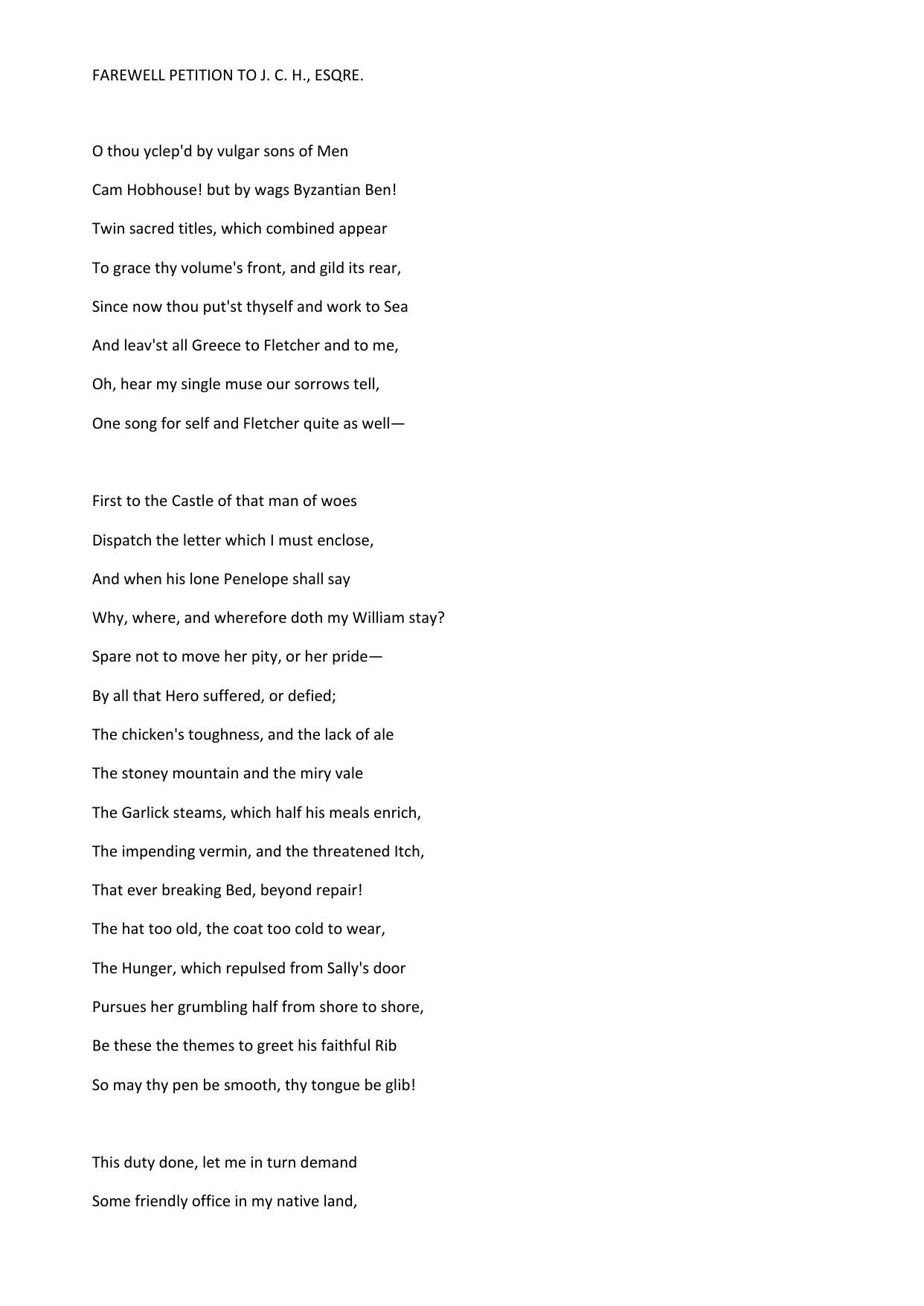 Farewell Petition to J. C. H., Esqre.