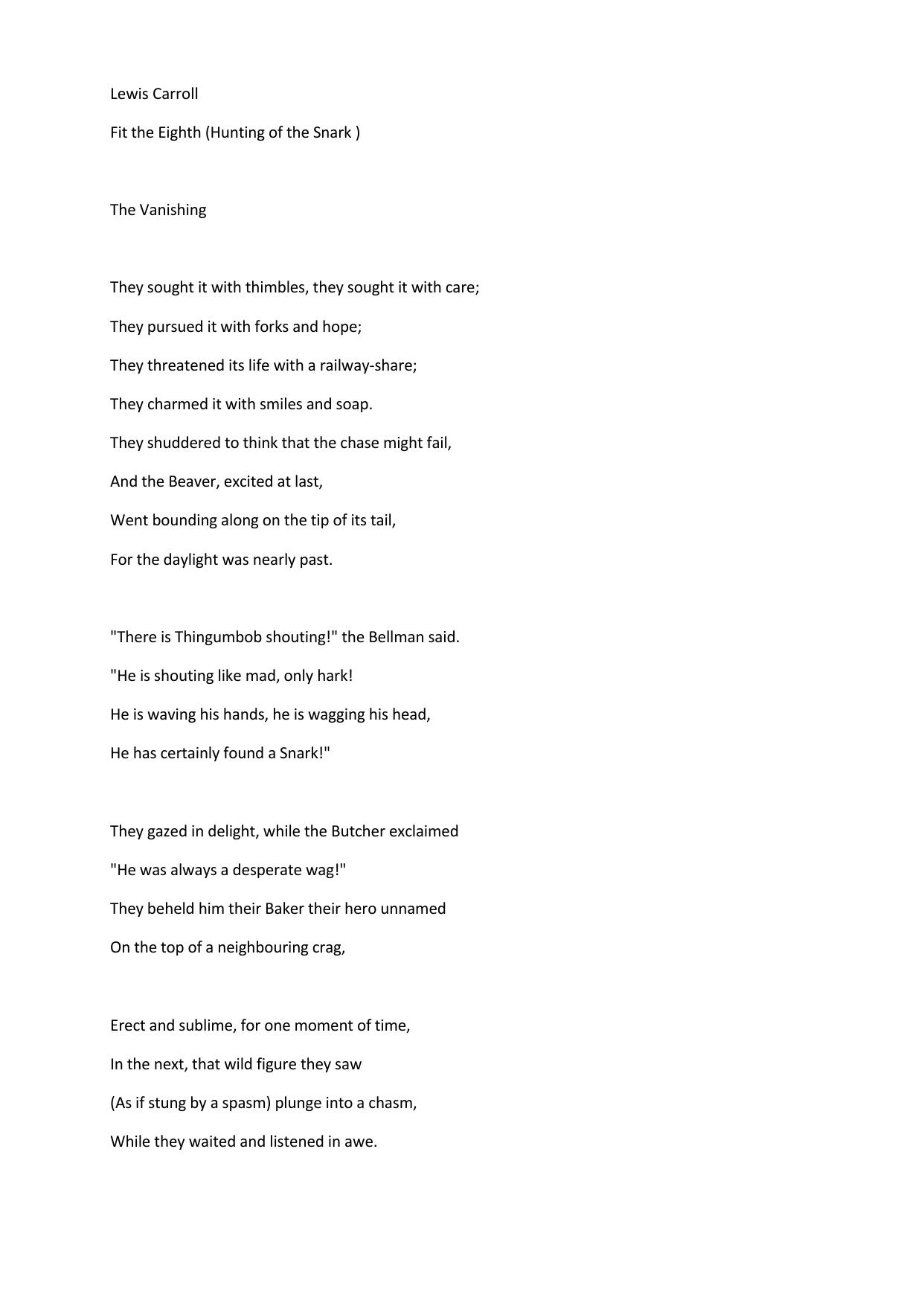 Fit the Eighth (Hunting of the Snark )