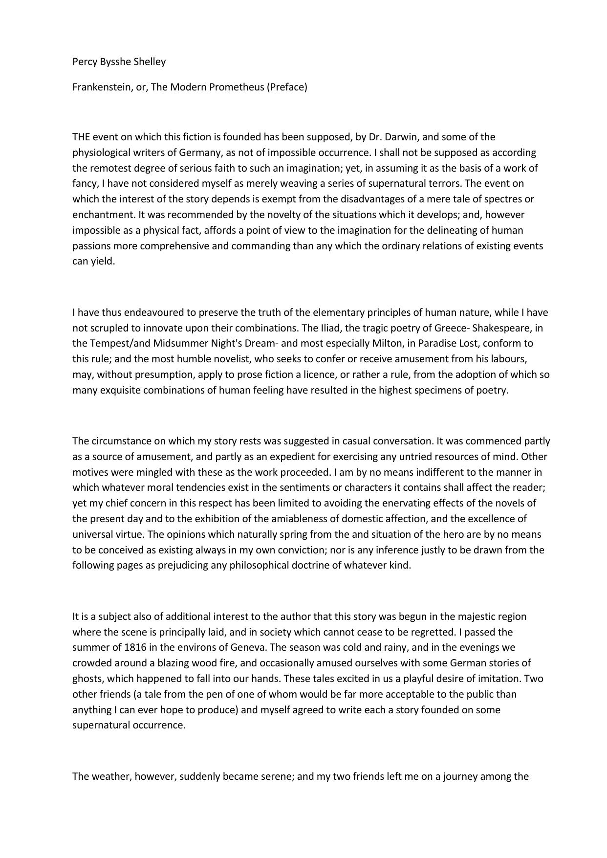 Frankenstein or, The Modern Prometheus (Preface)
