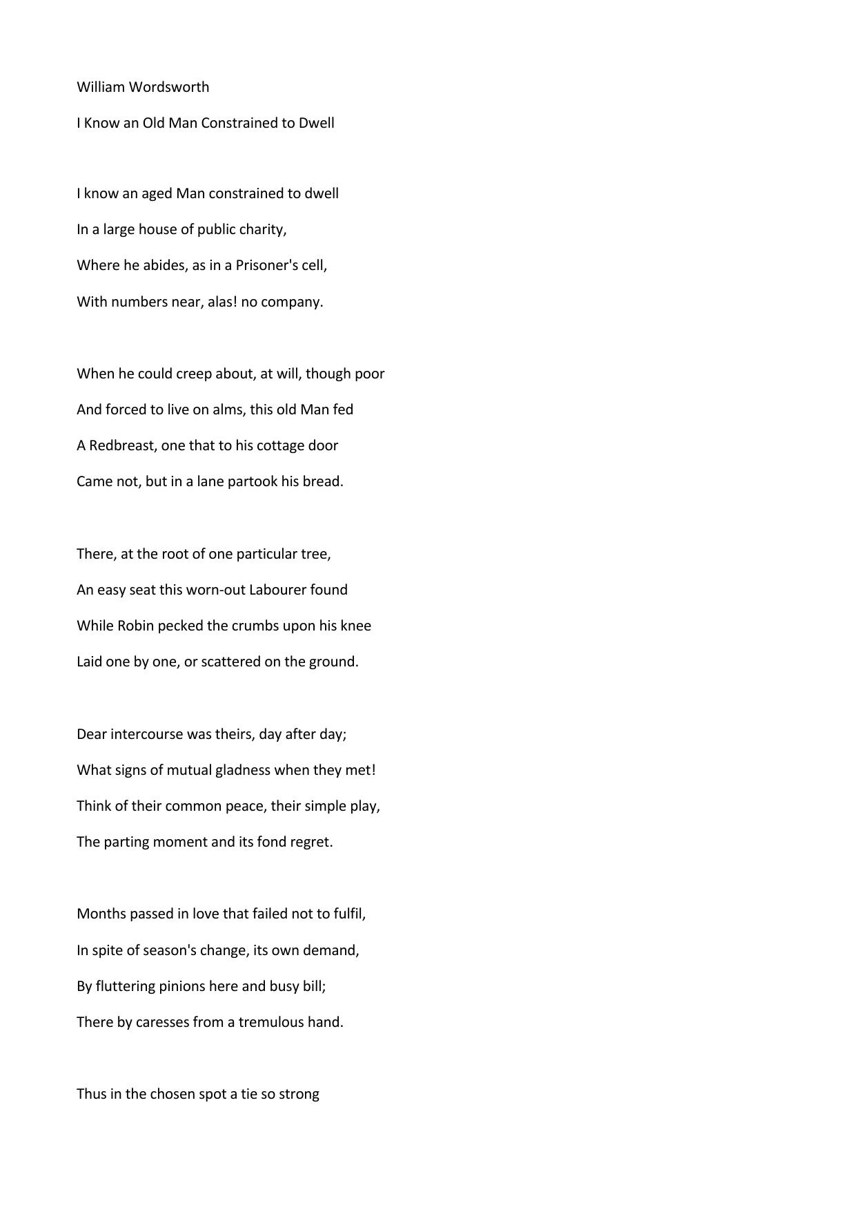 I Know an Old Man Constrained to Dwell