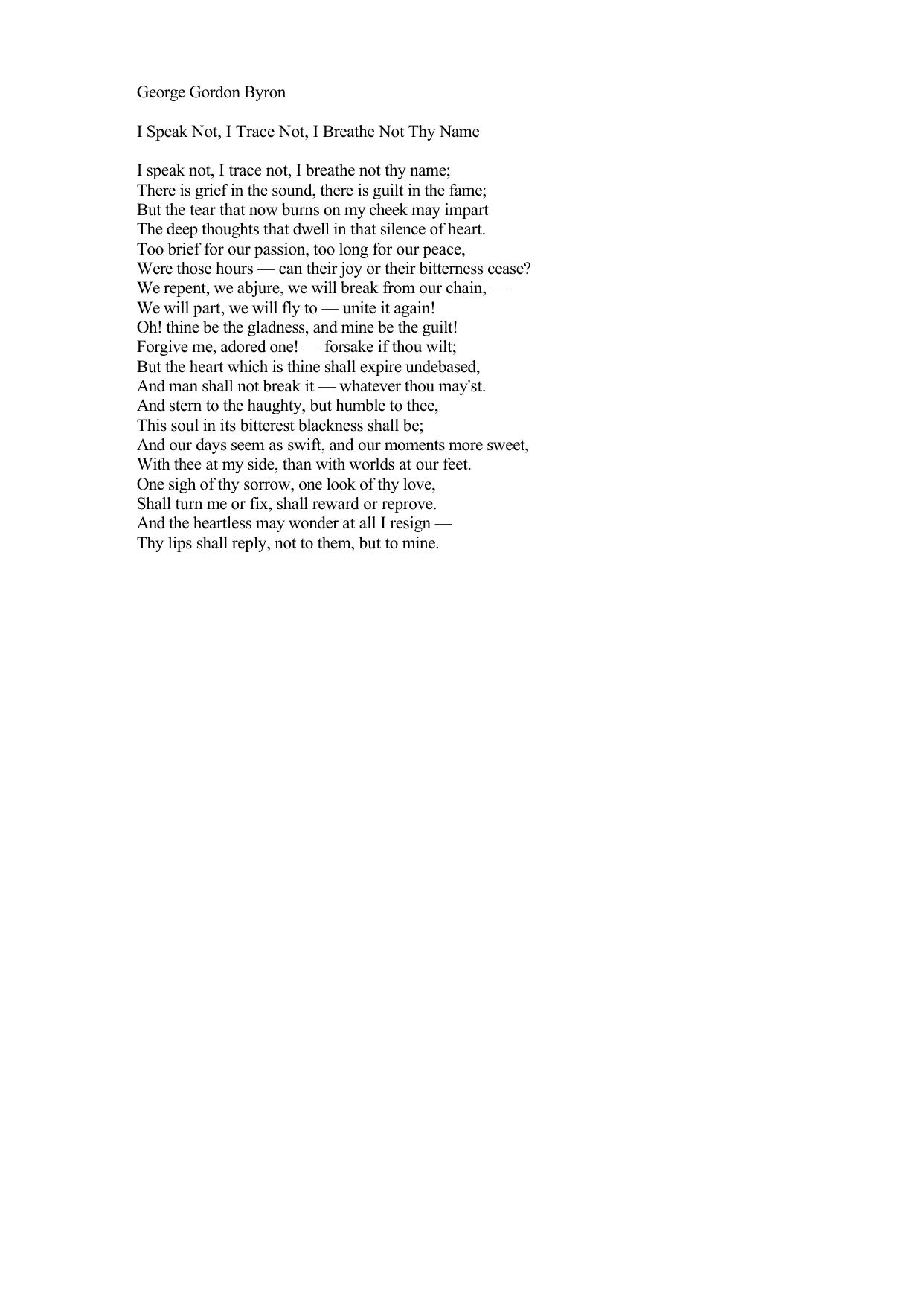 I speak not, I trace not, I breathe not thy name