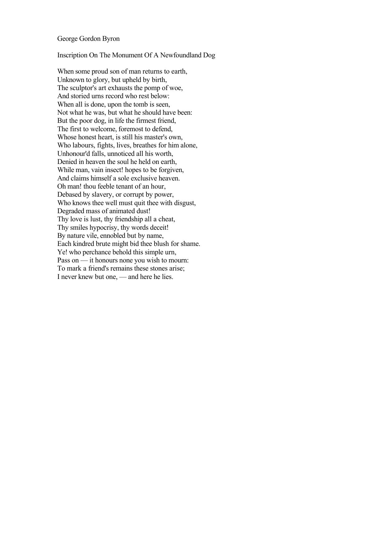 Inscription on the Monument of a Newfoundland Dog
