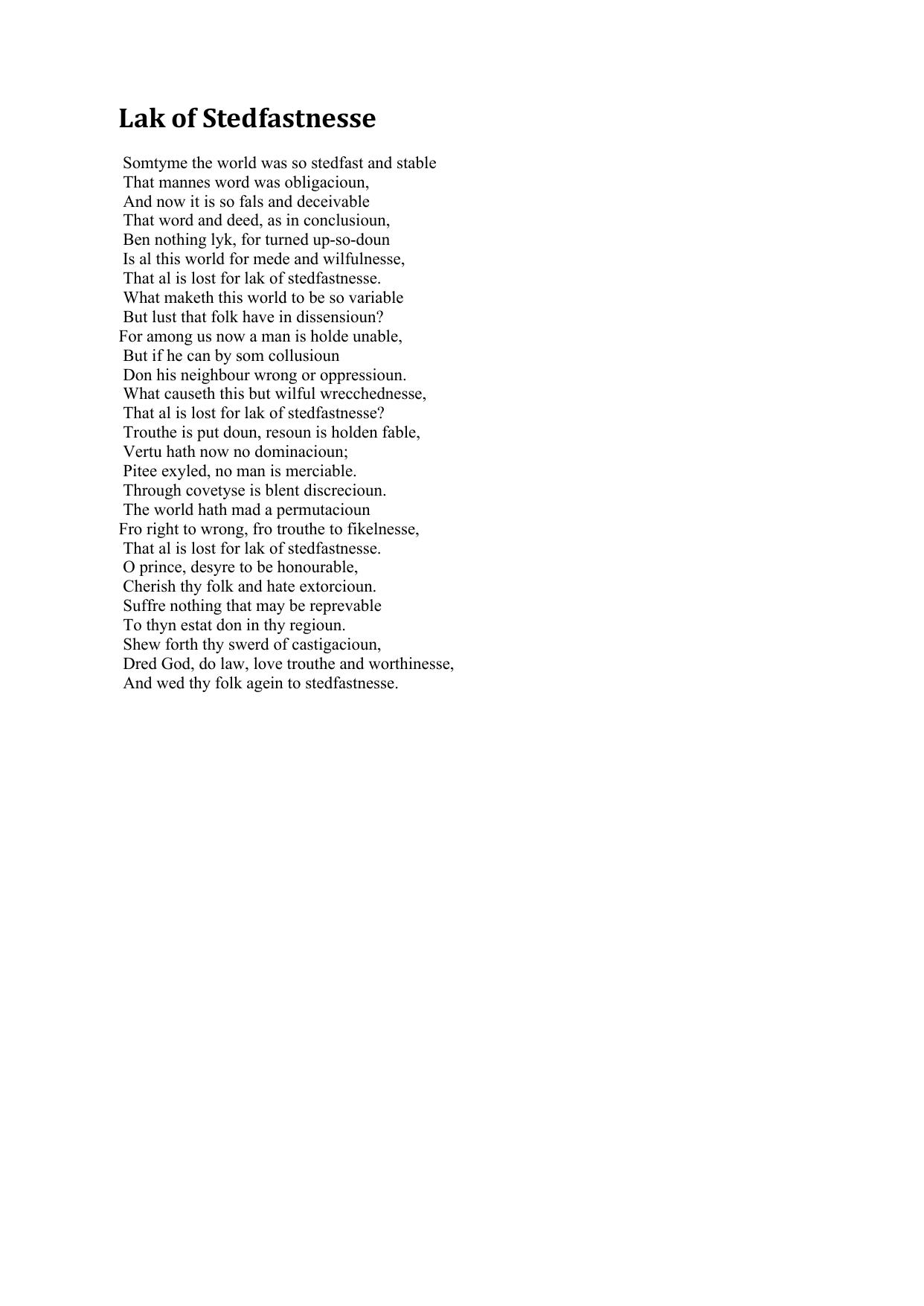 Lak of Stedfastnesse