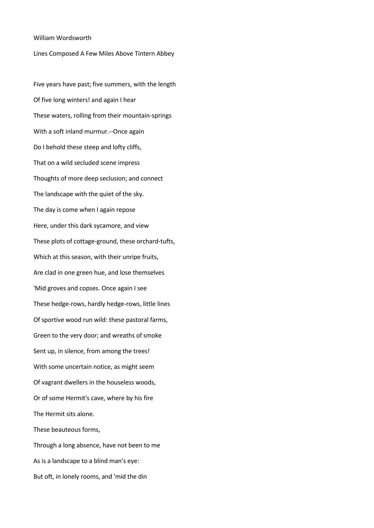 Lines Composed A Few Miles Above Tintern Abbey