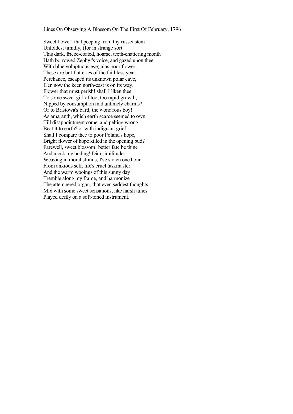 Lines On Observing A Blossom On The First Of February, 1796