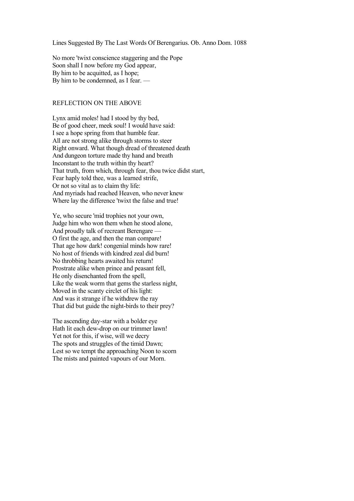 Lines Suggested By The Last Words Of Berengarius. Ob. Anno Dom. 1088