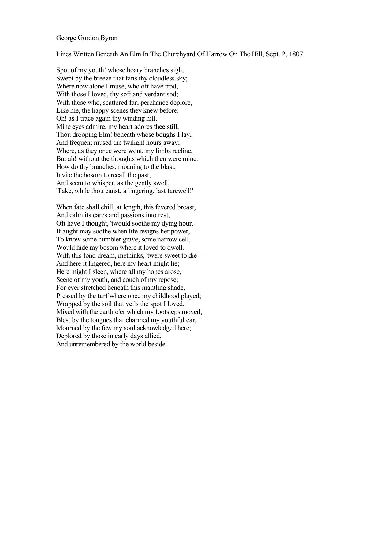 Lines Written beneath an Elm in the Churchyard of Harrow
