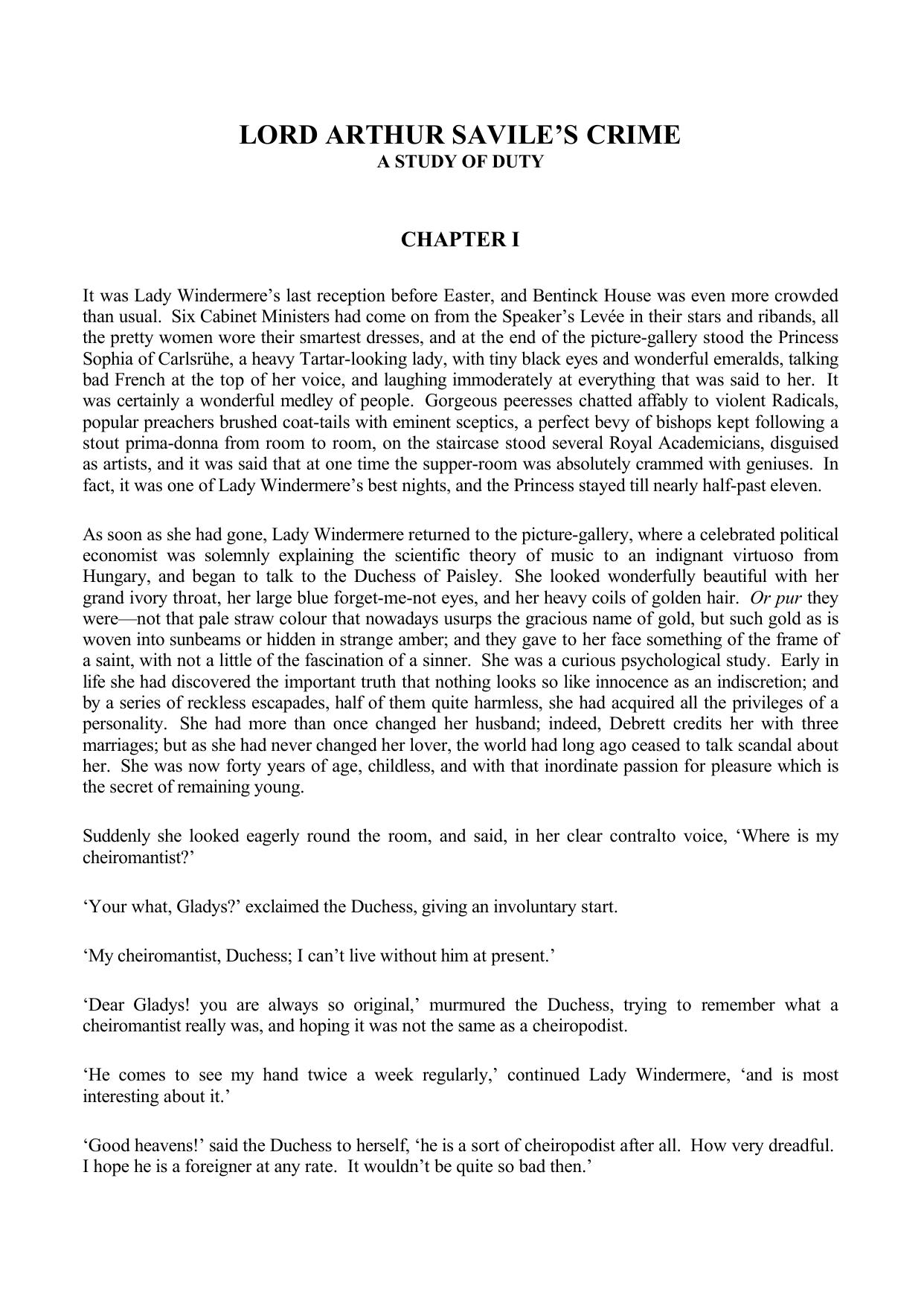 Lord Arthur Savile's Crime