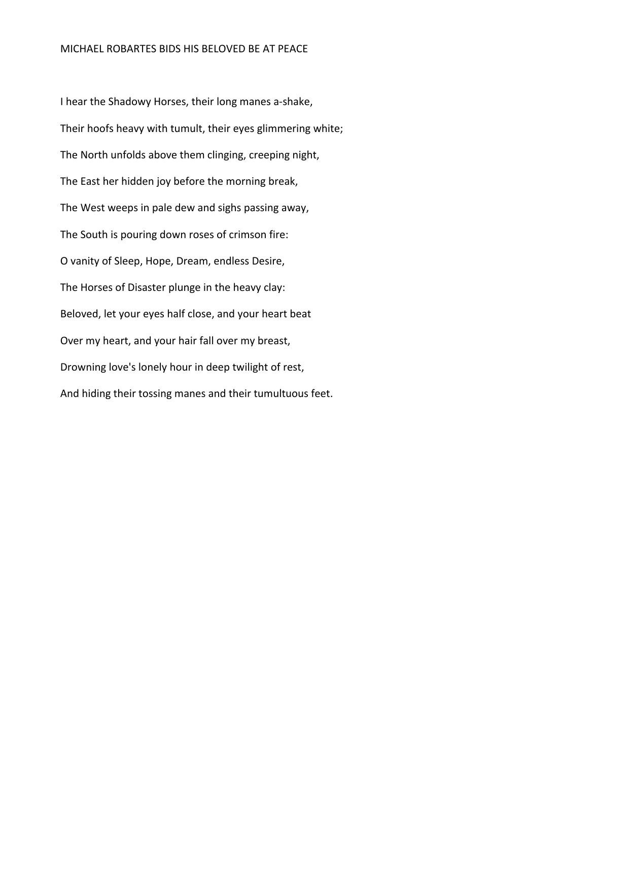 Michael Robartes bids his Beloved be at Peace