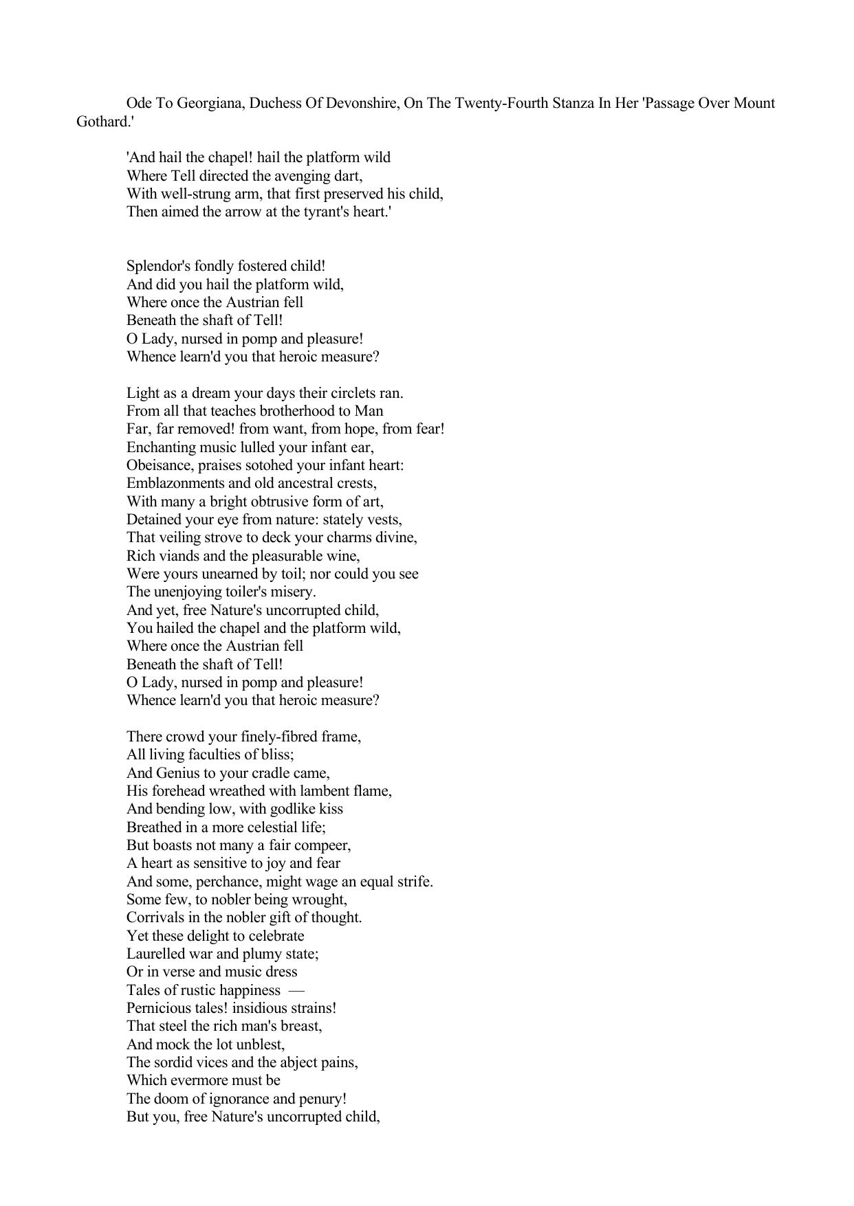 Ode To Georgiana, Duchess Of Devonshire, On The Twenty-Fourth Stanza In Her 'Passage Over Mount Gothard.'