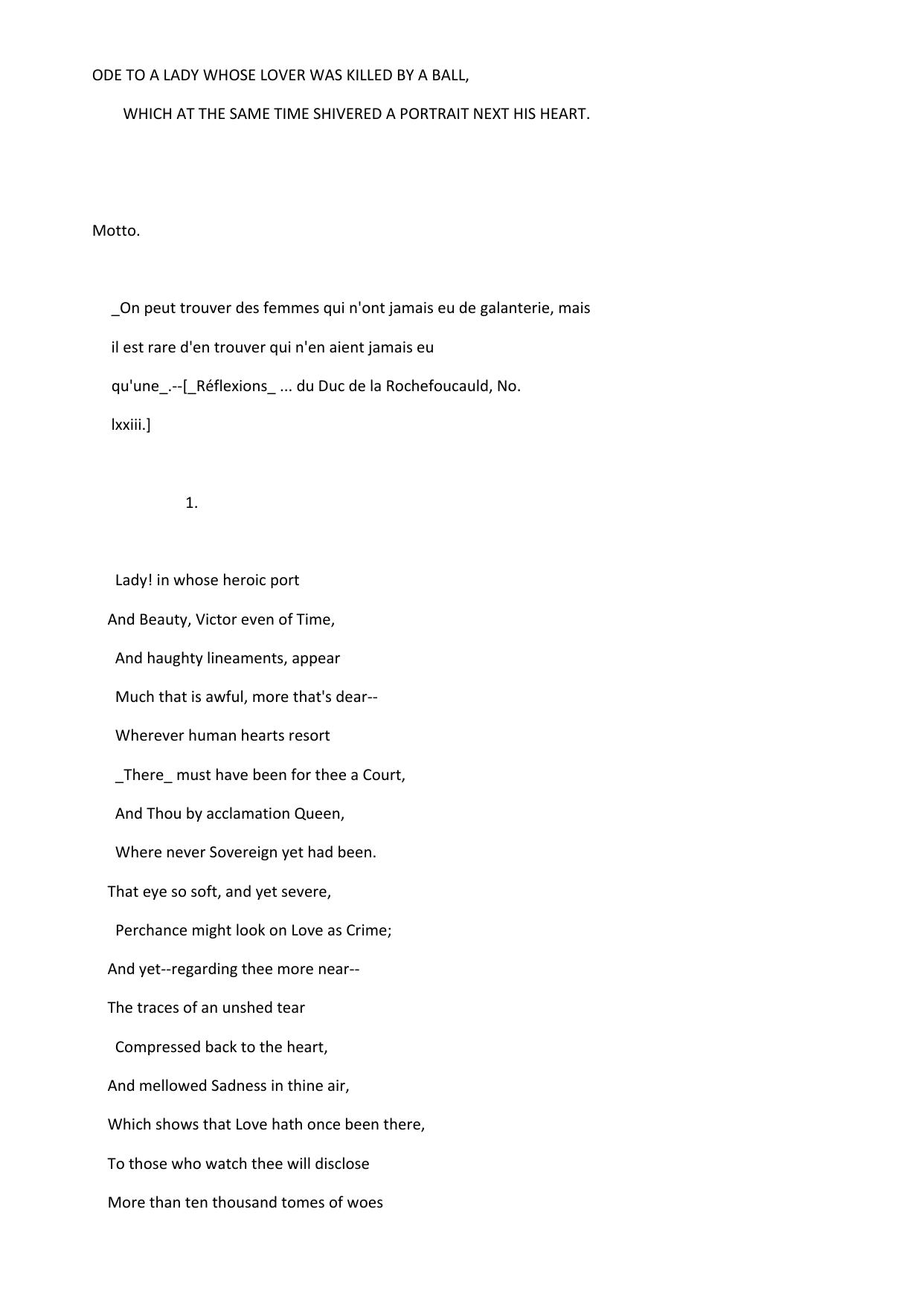 Ode to a Lady whose Lover was killed by a Ball, which at the same time shivered a portrait next his heart