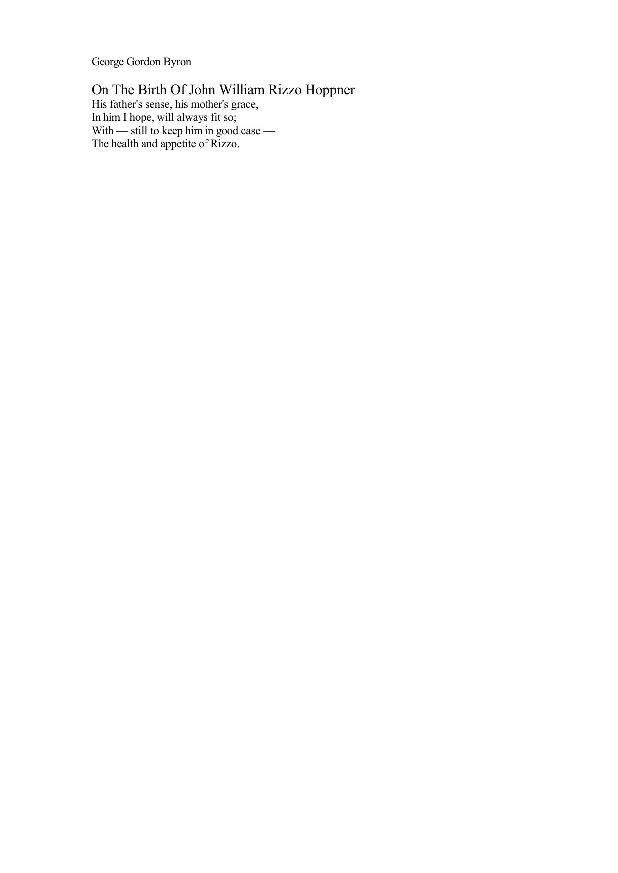 On the Birth of John William Rizzo Hoppner