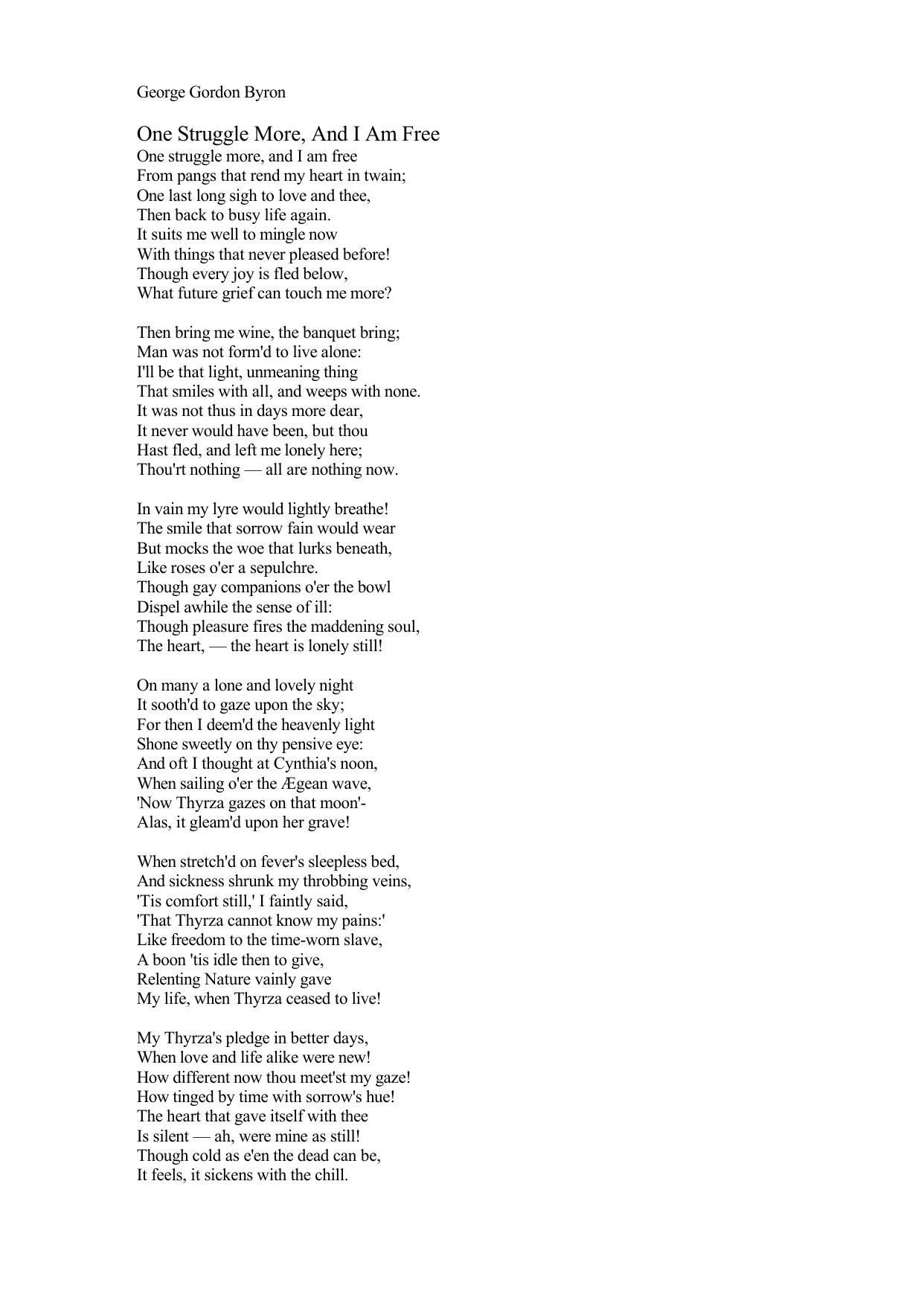 One struggle more, and I am free