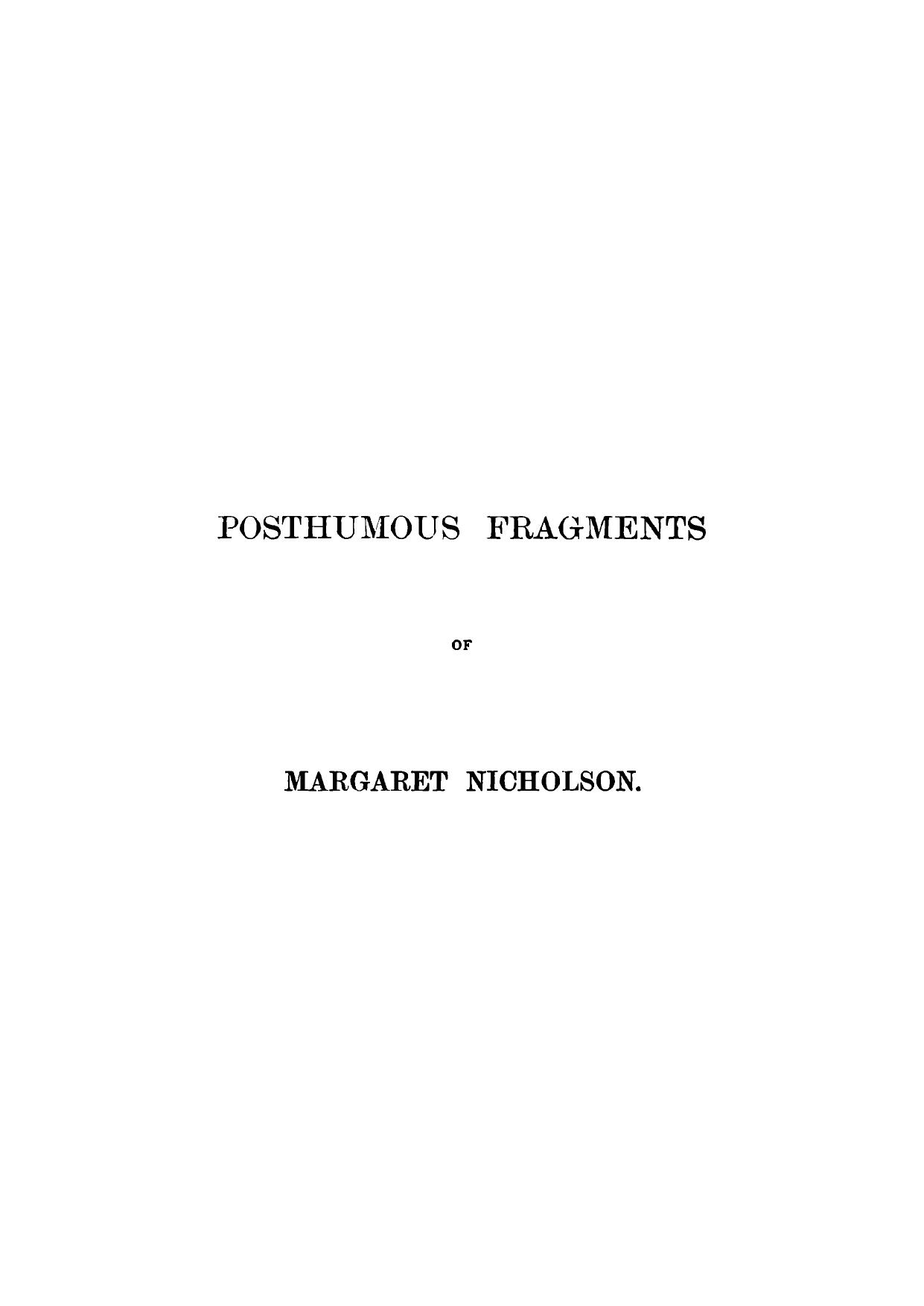 Posthumous Fragments of Margaret Nicholson