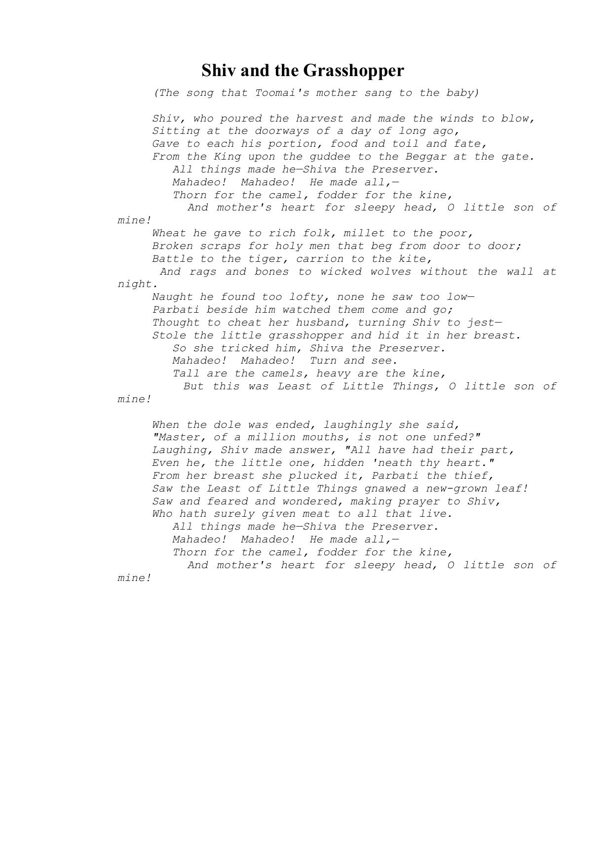 Shiv and the Grasshopper