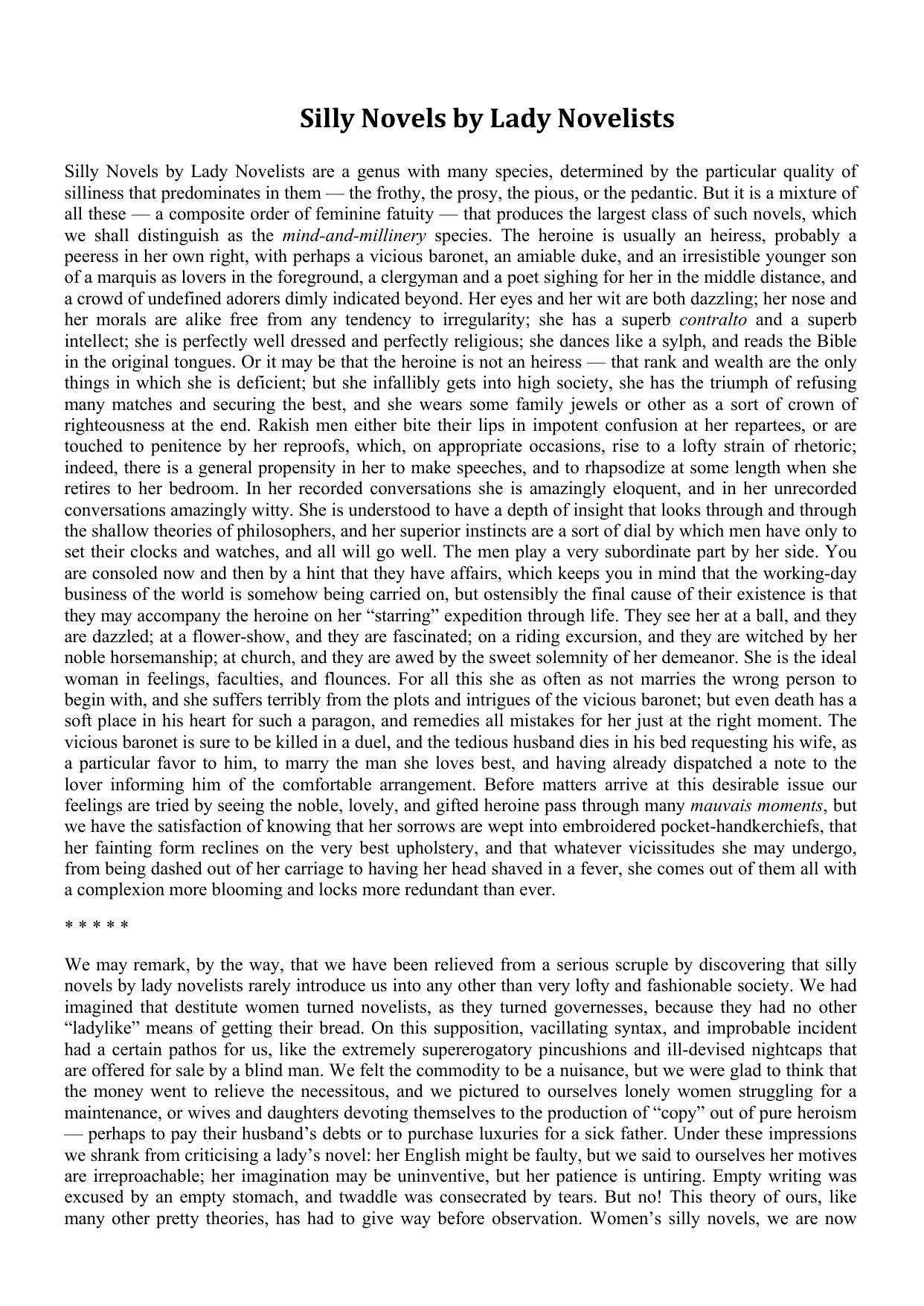 Silly Novels by Lady Novelists