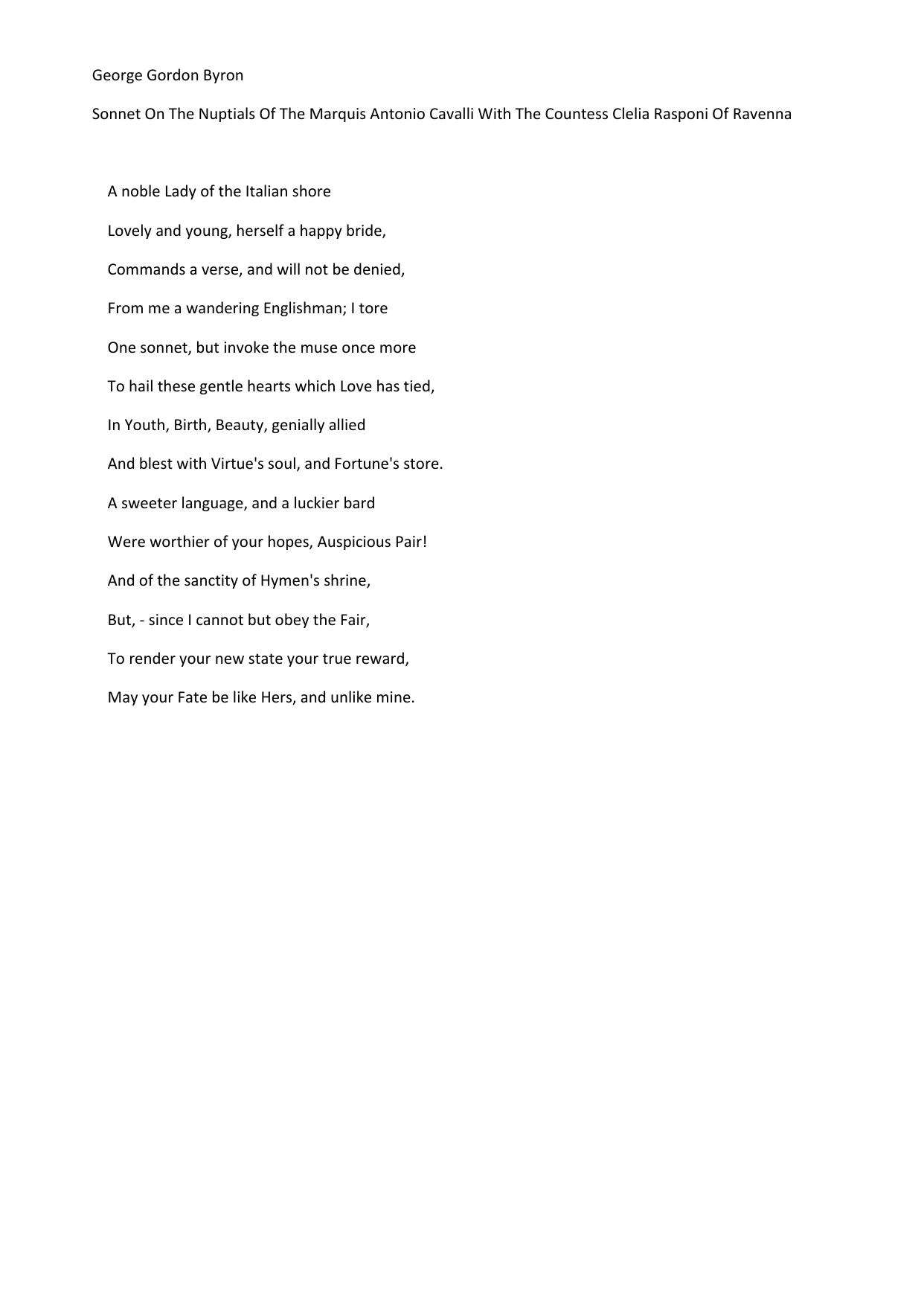 Sonnet on the Nuptials of the Marquis Antonio Cavalli with the Countess Clelia Rasponi of Ravenna