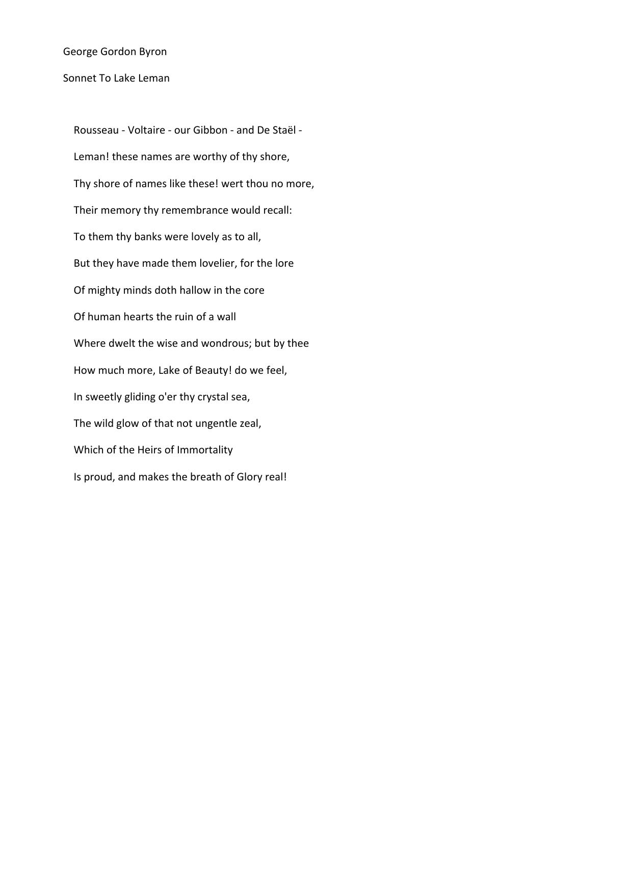 Sonnet to Lake Leman