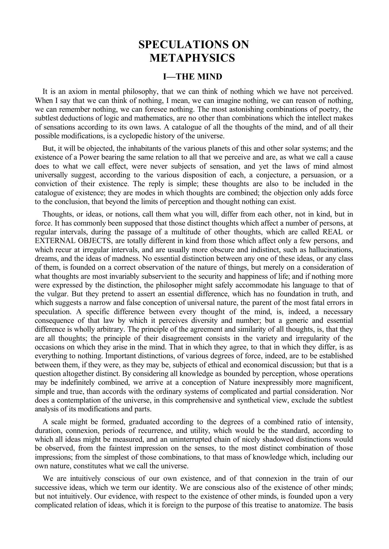 Speculations on Metaphysics