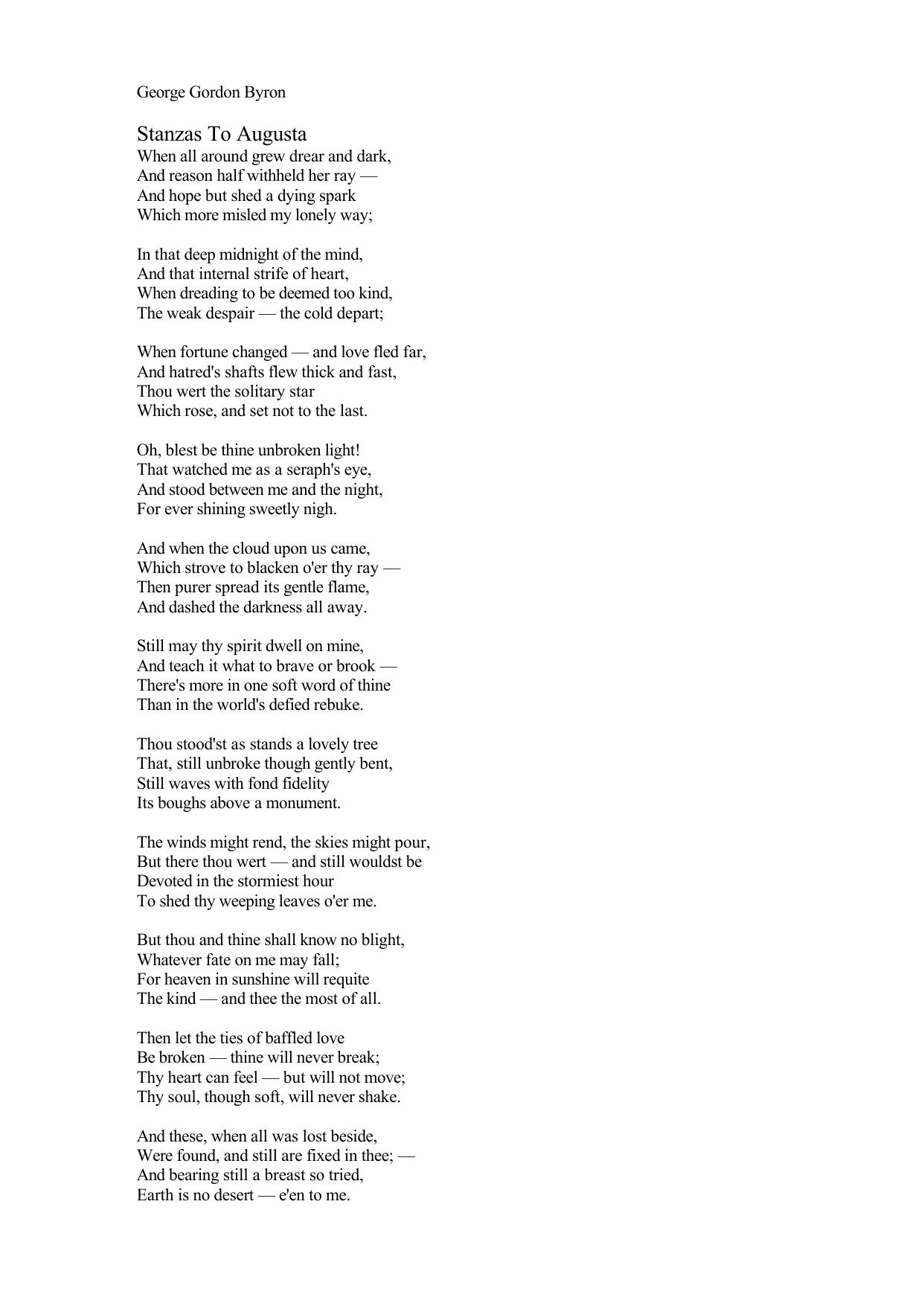 Stanzas to Augusta (When all around grew drear and dark)