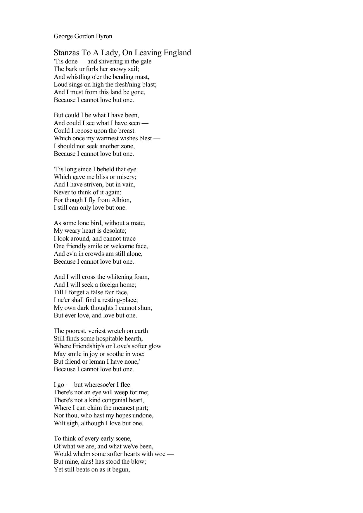 Stanzas to a Lady, on Leaving England