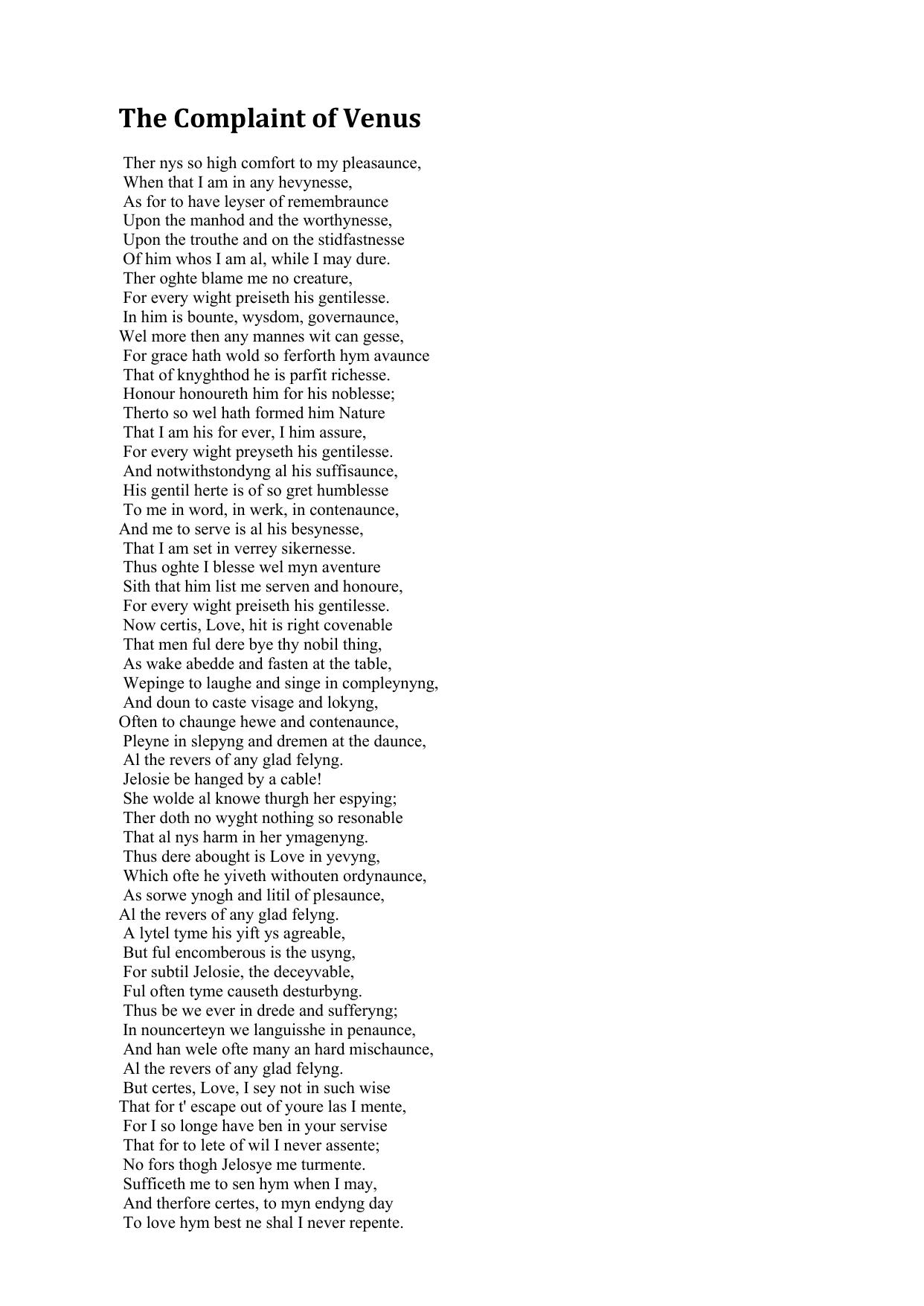 The Complaint of Venus