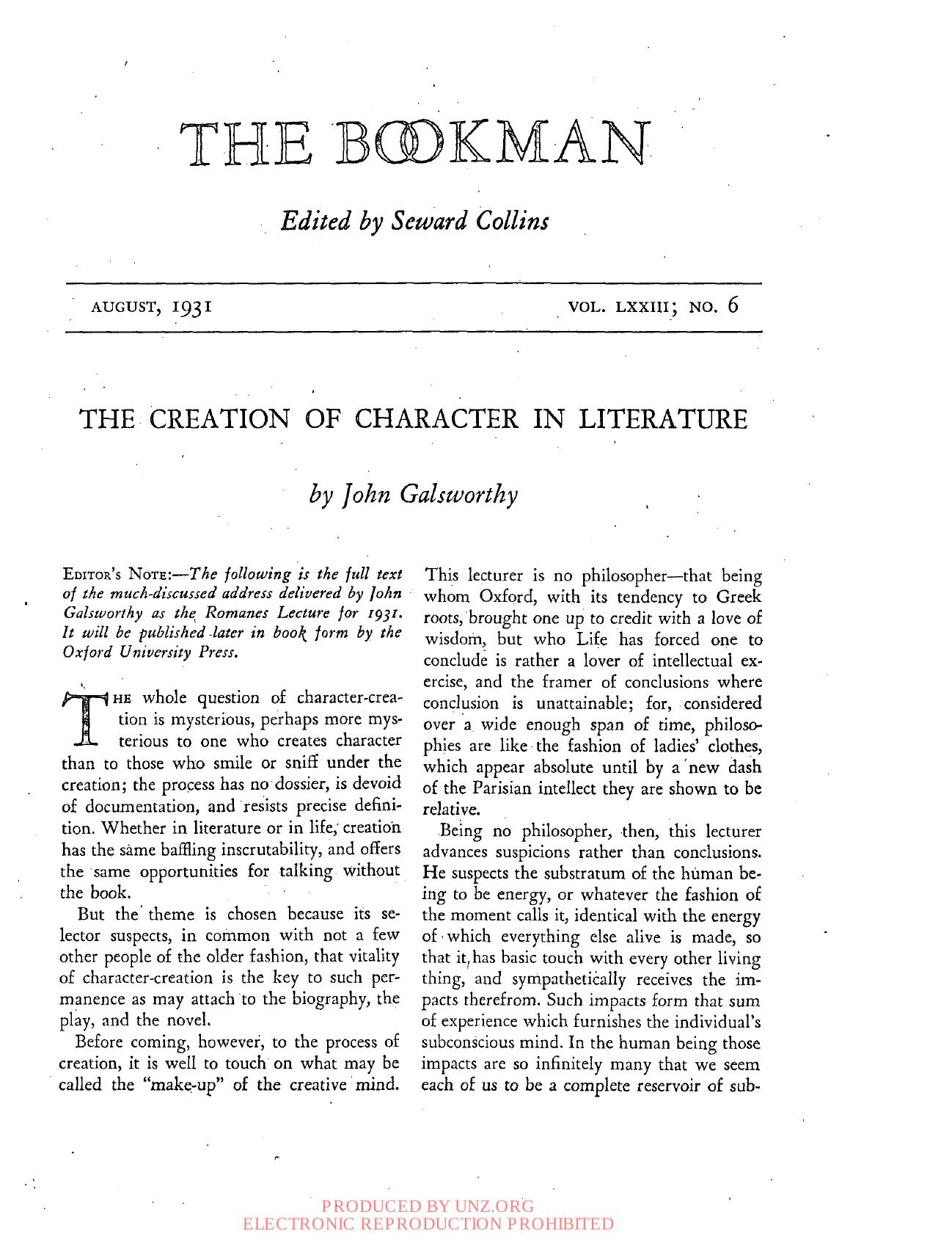The Creation of Character in Literature