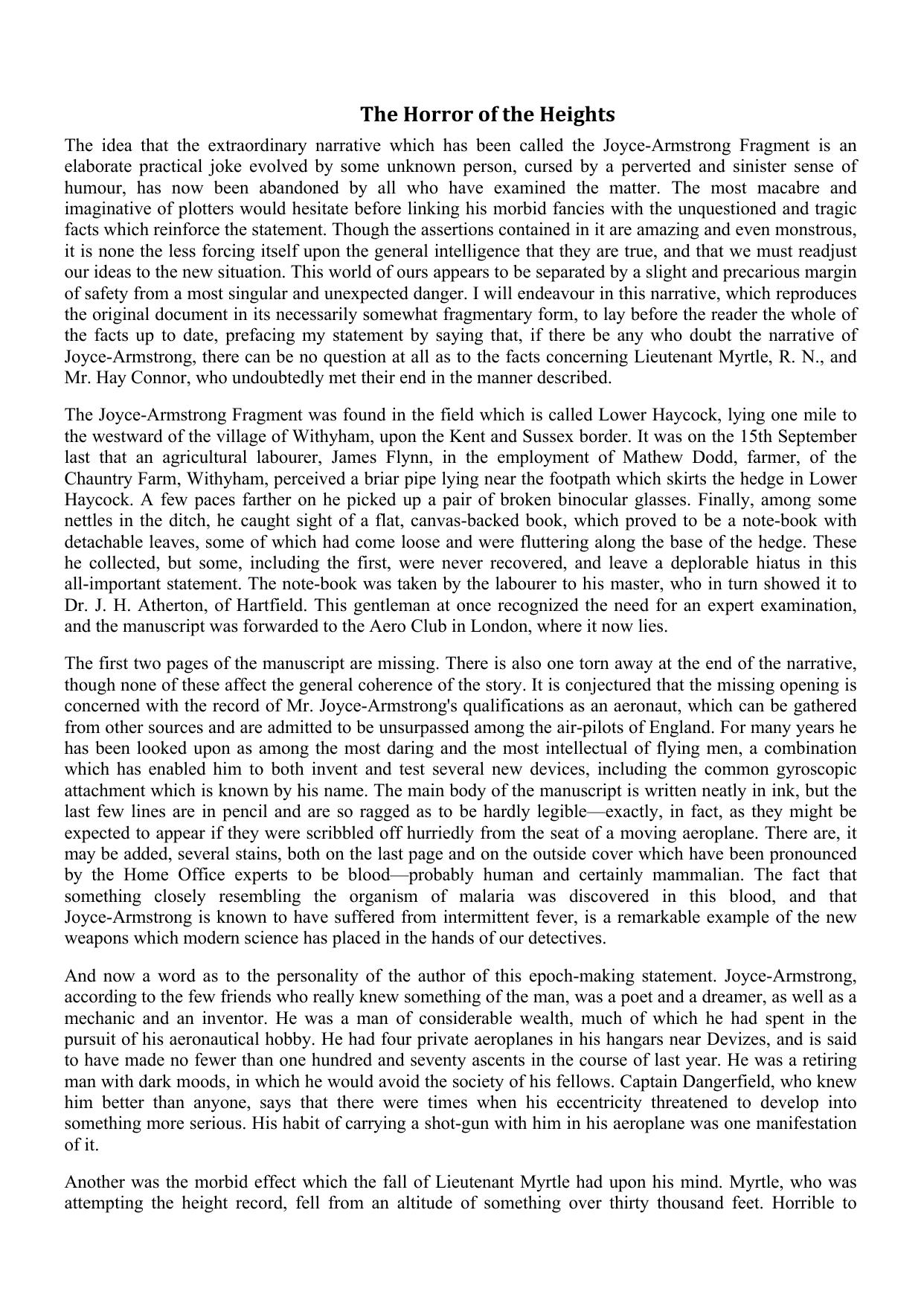 The Horror of the Heights