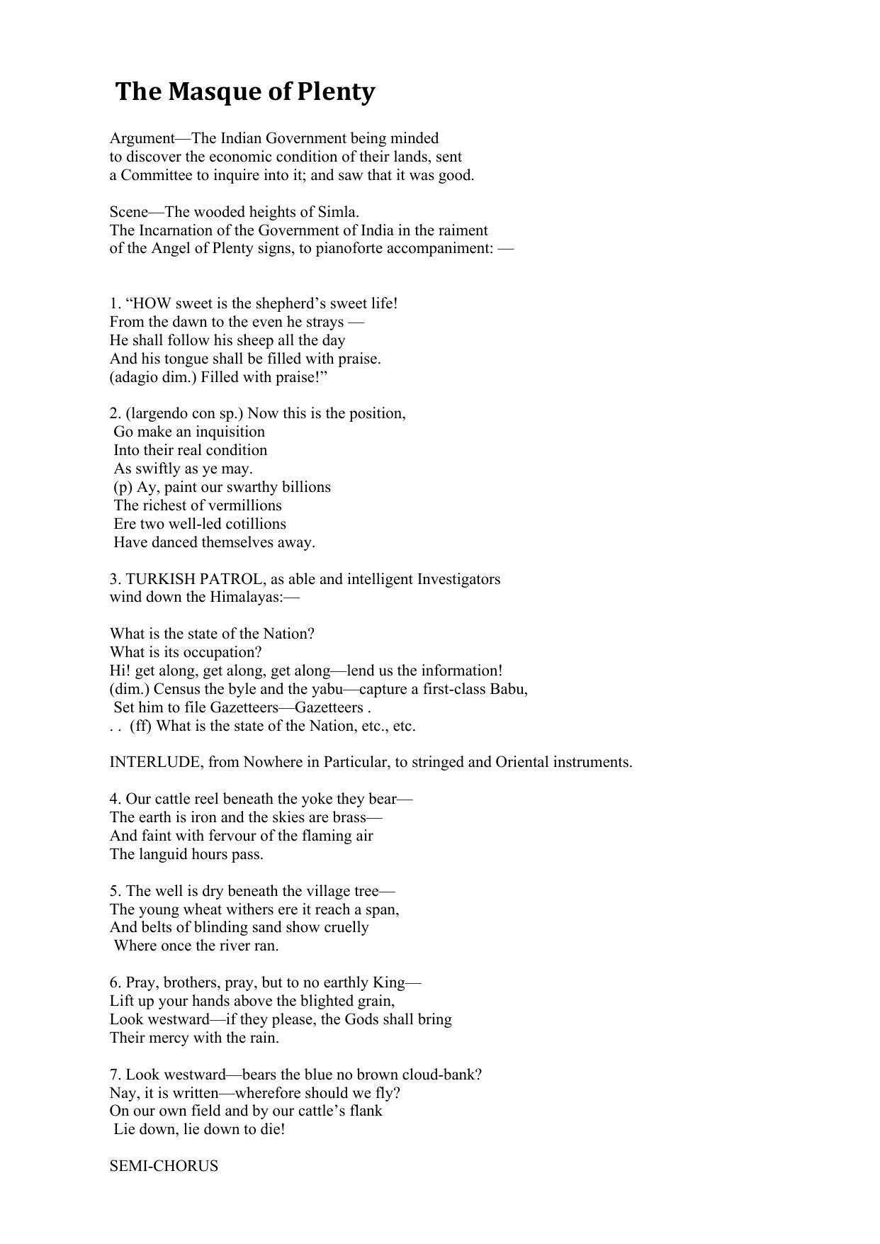 The Masque of Plenty