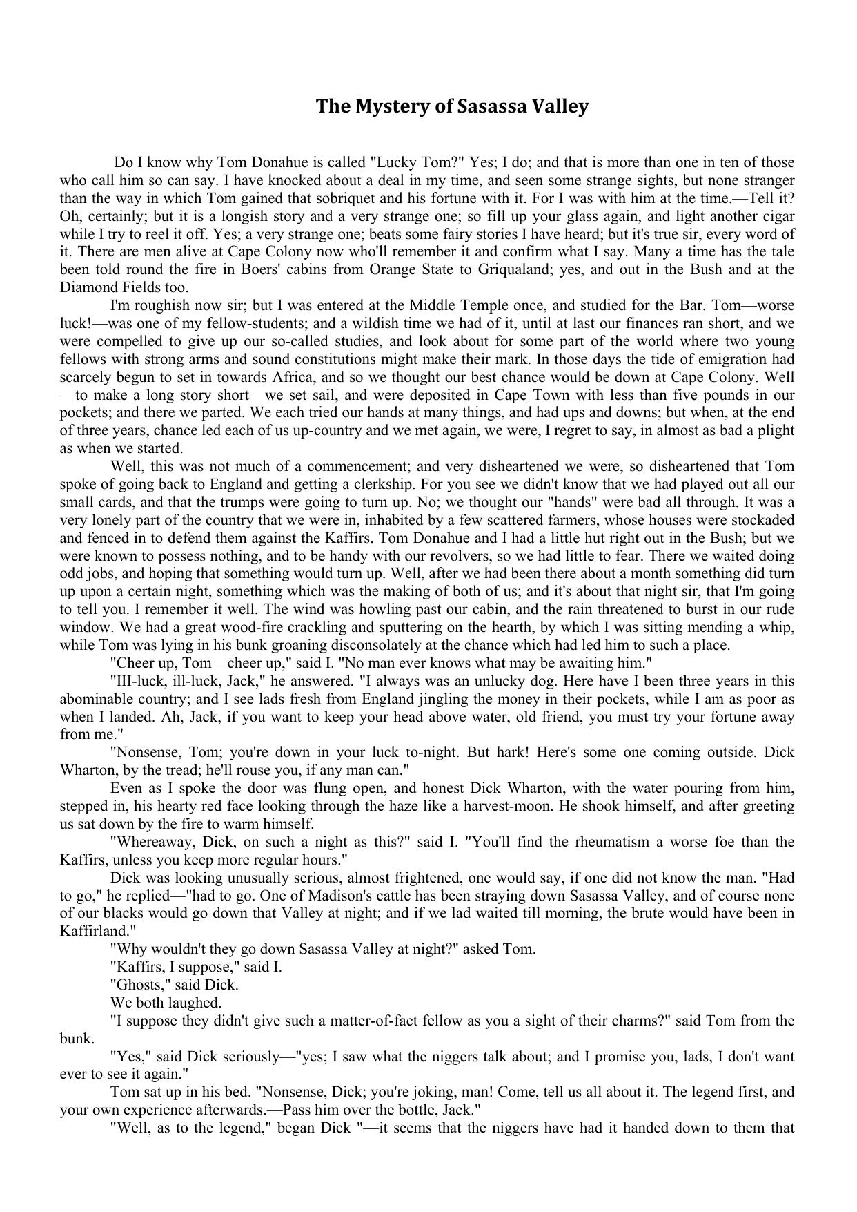 The Mystery of Sasassa Valley