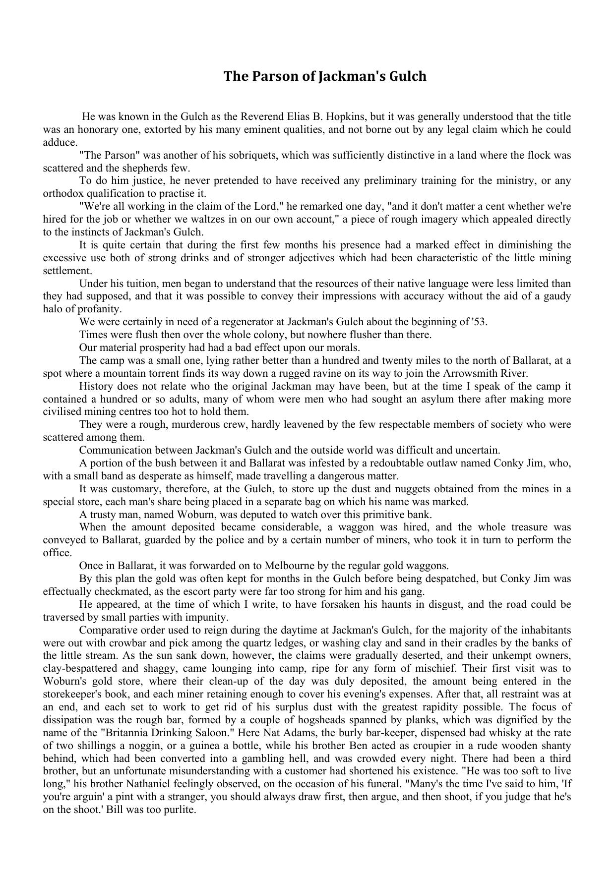 The Parson of Jackman's Gulch