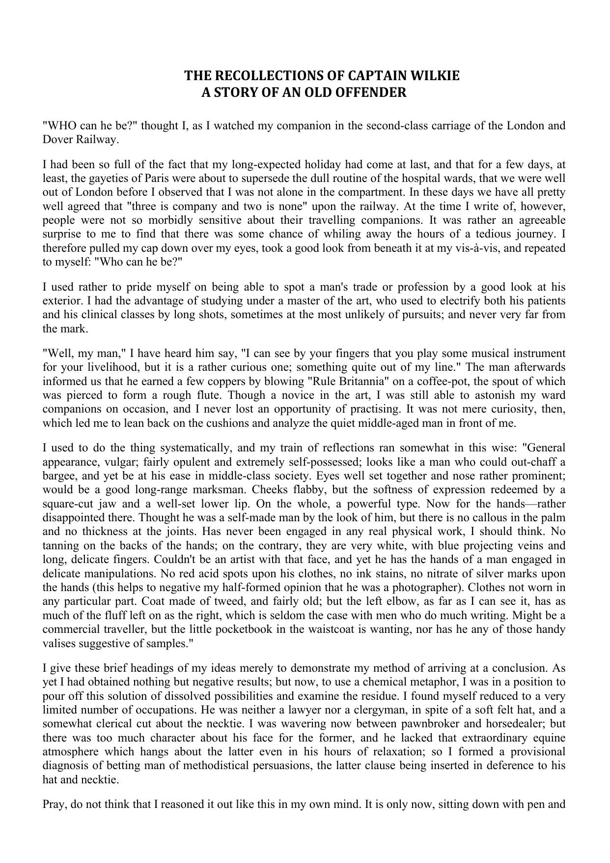 The Recollections of Captain Wilkie