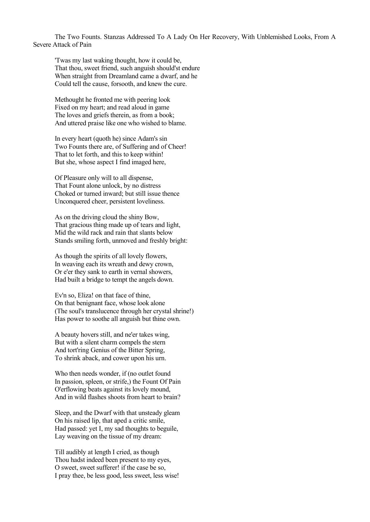 The Two Founts. Stanzas Addressed To A Lady On Her Recovery, With Unblemished Looks, From A Severe Attack of Pain