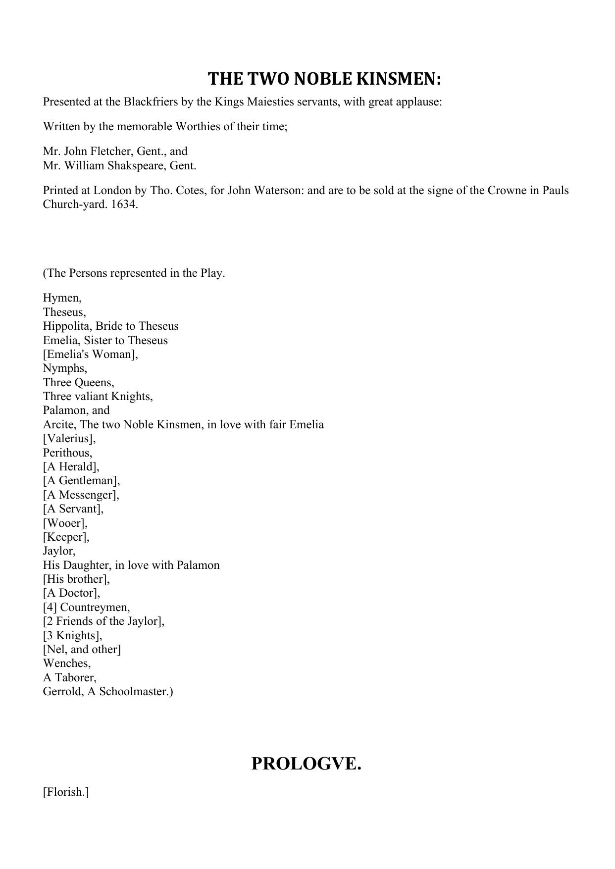 The Two Noble Kinsmen