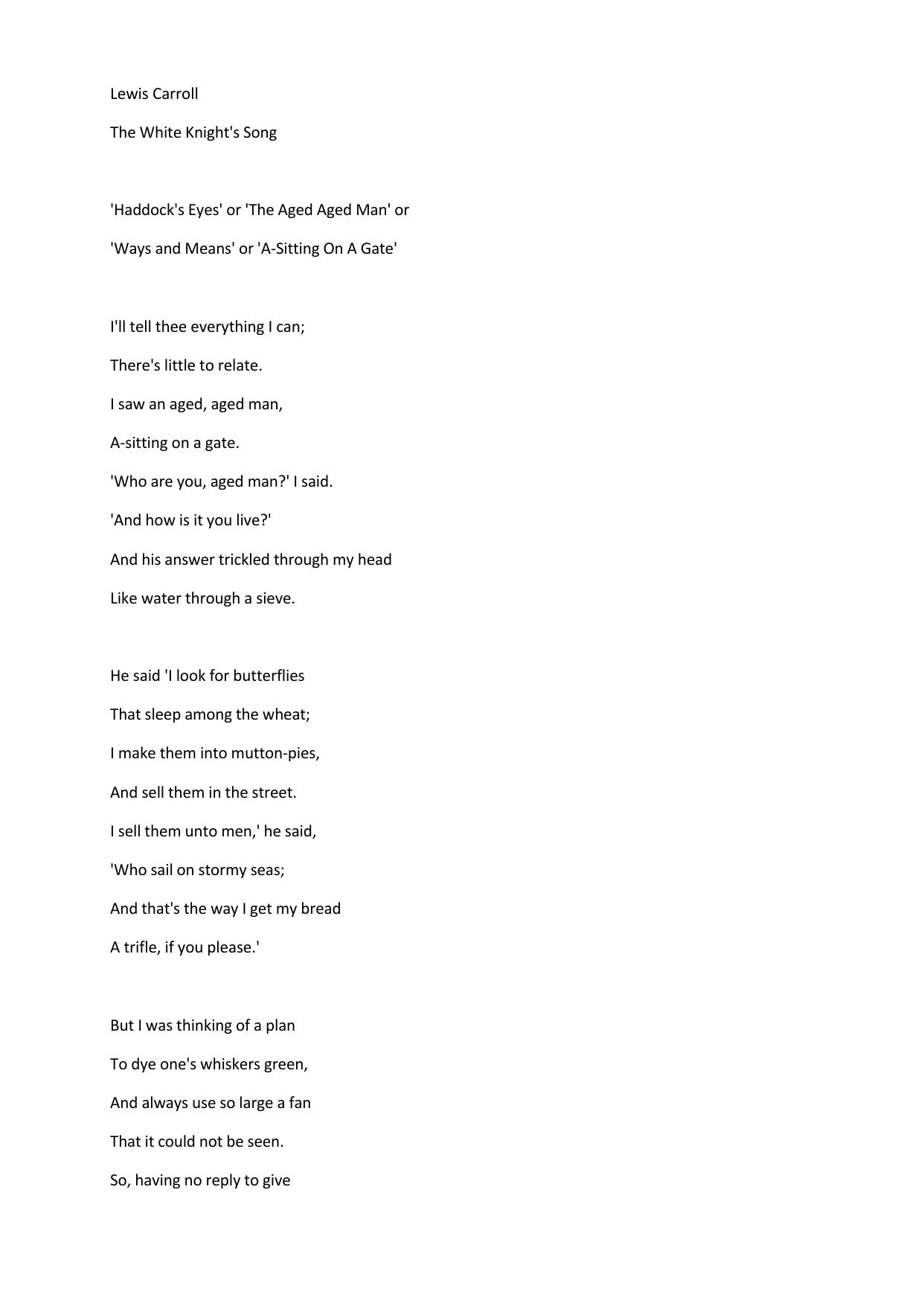 The White Knight's Song