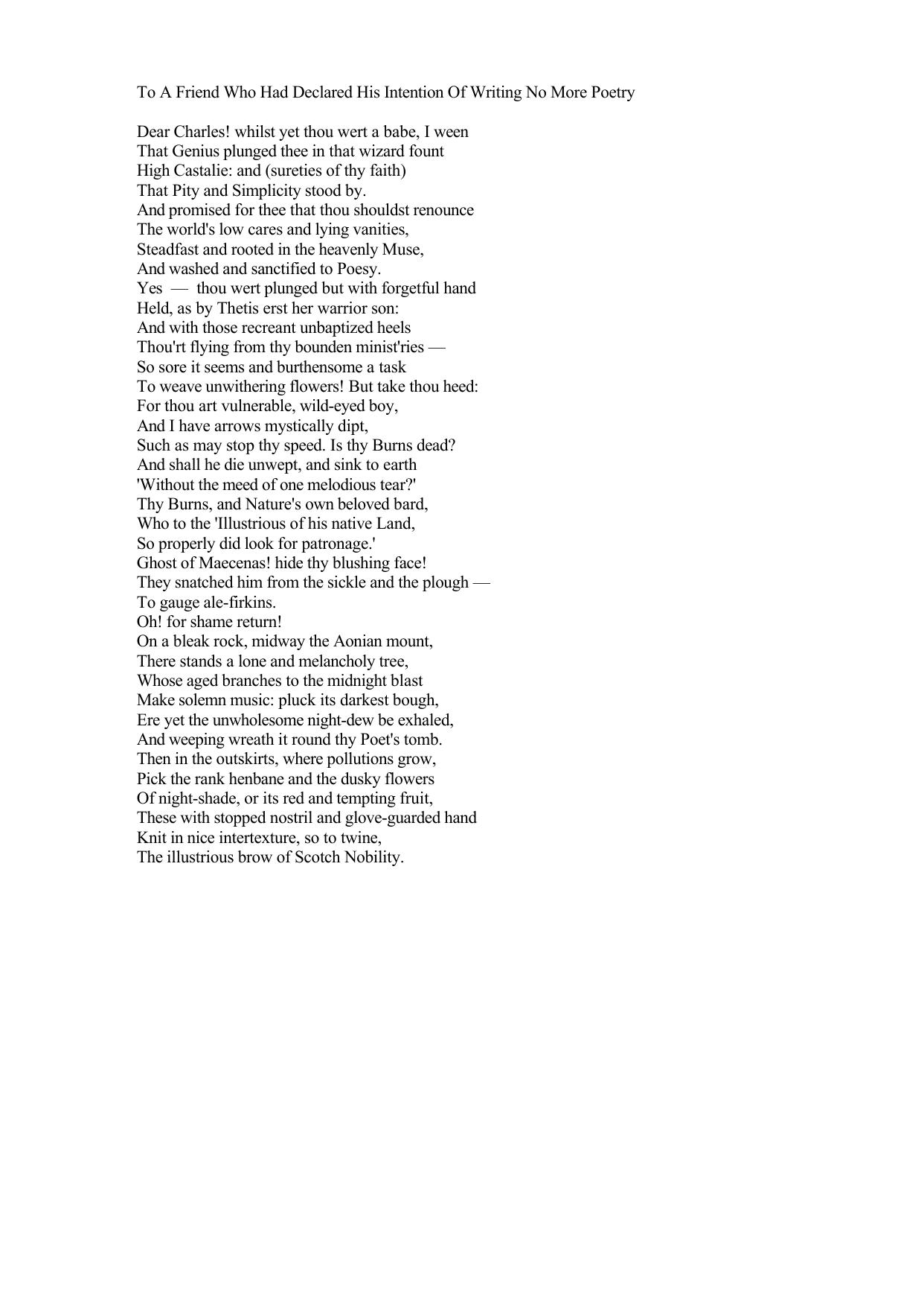To A Friend Who Had Declared His Intention Of Writing No More Poetry