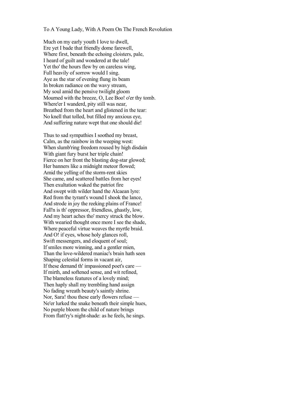 To A Young Lady, With A Poem On The French Revolution