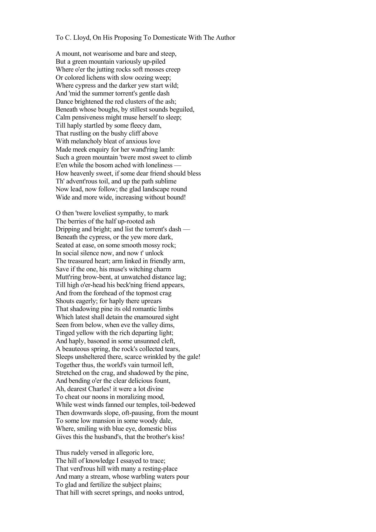 To C. Lloyd, On His Proposing To Domesticate With The Author