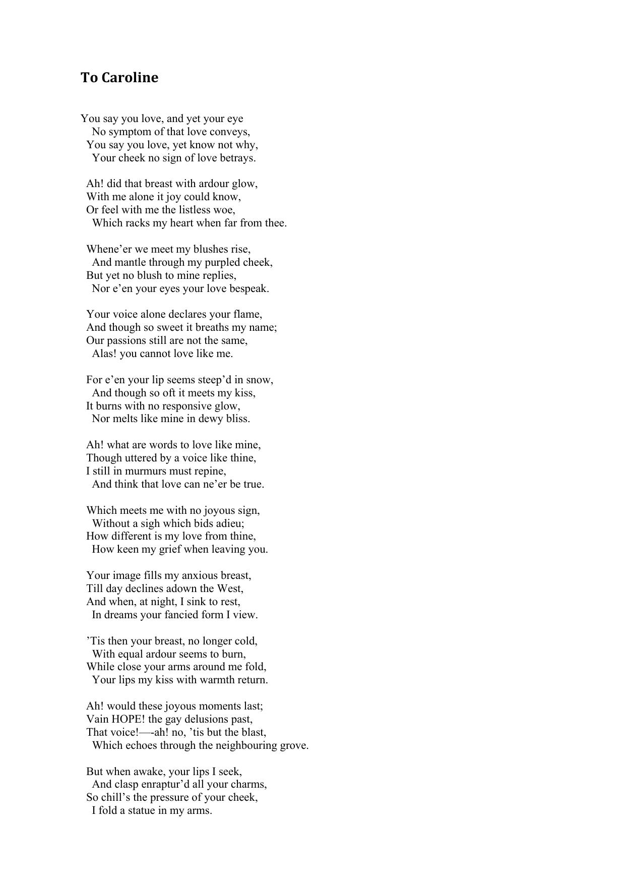 To Caroline (You say you love, and yet your eye)
