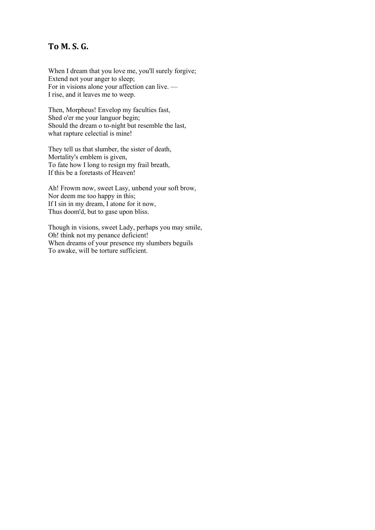 To M. S. G. (When I dream that you love me, you'll surely forgive)